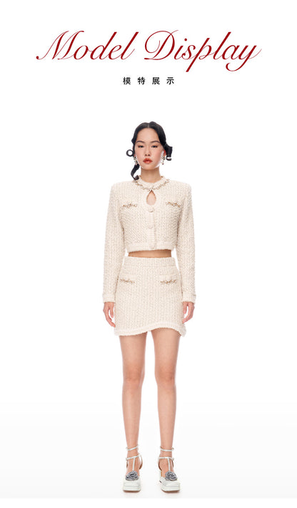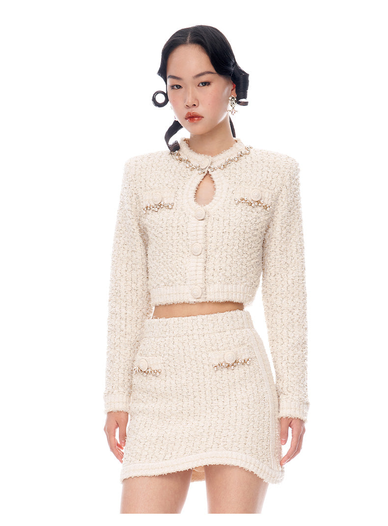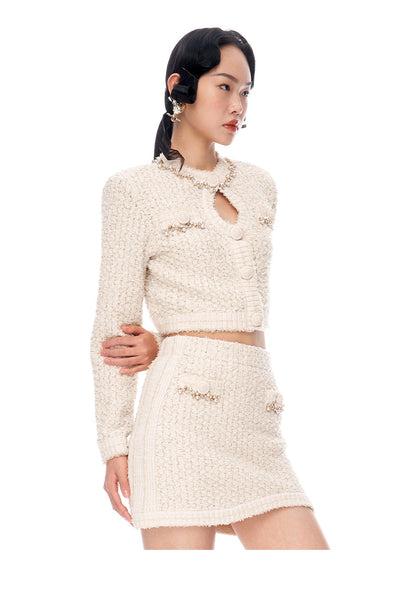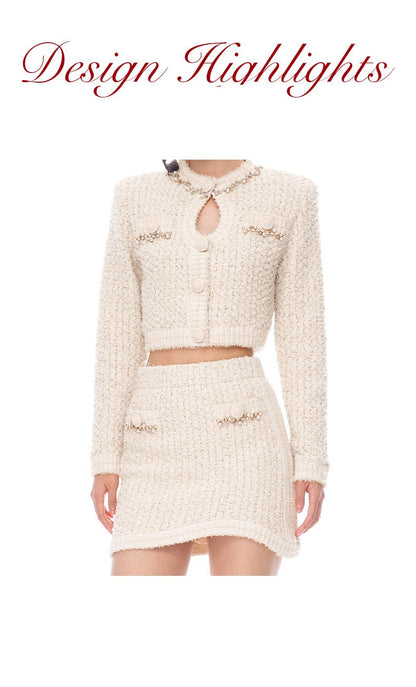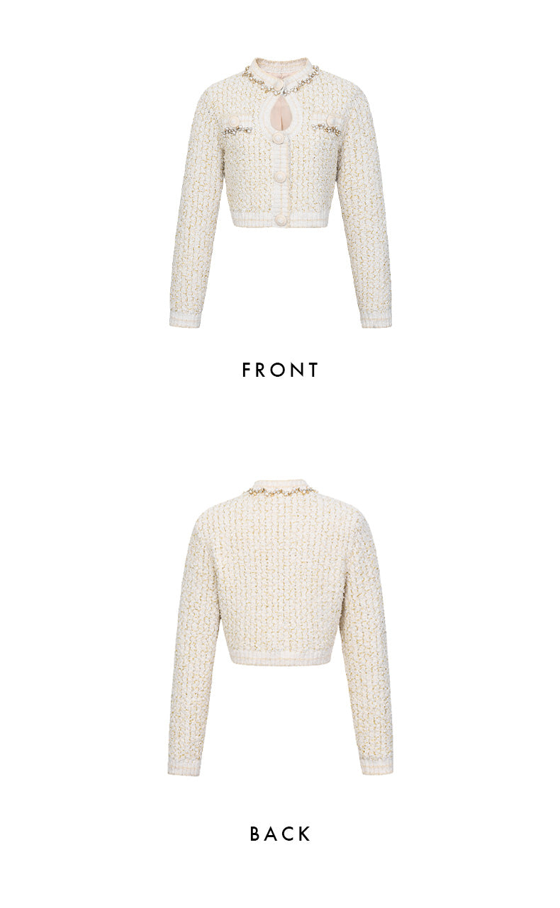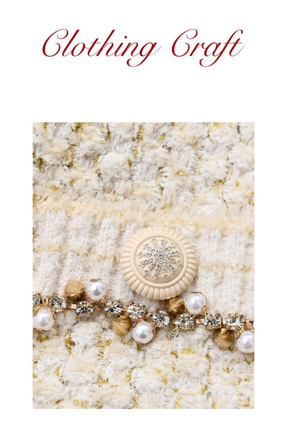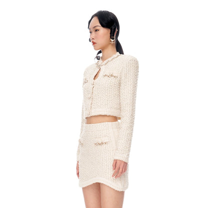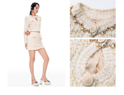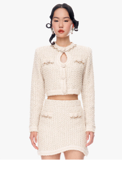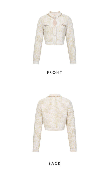 FAME Light Luxury Hand-beaded Tweed Small Knitted Cardigan Jacket - hiIji