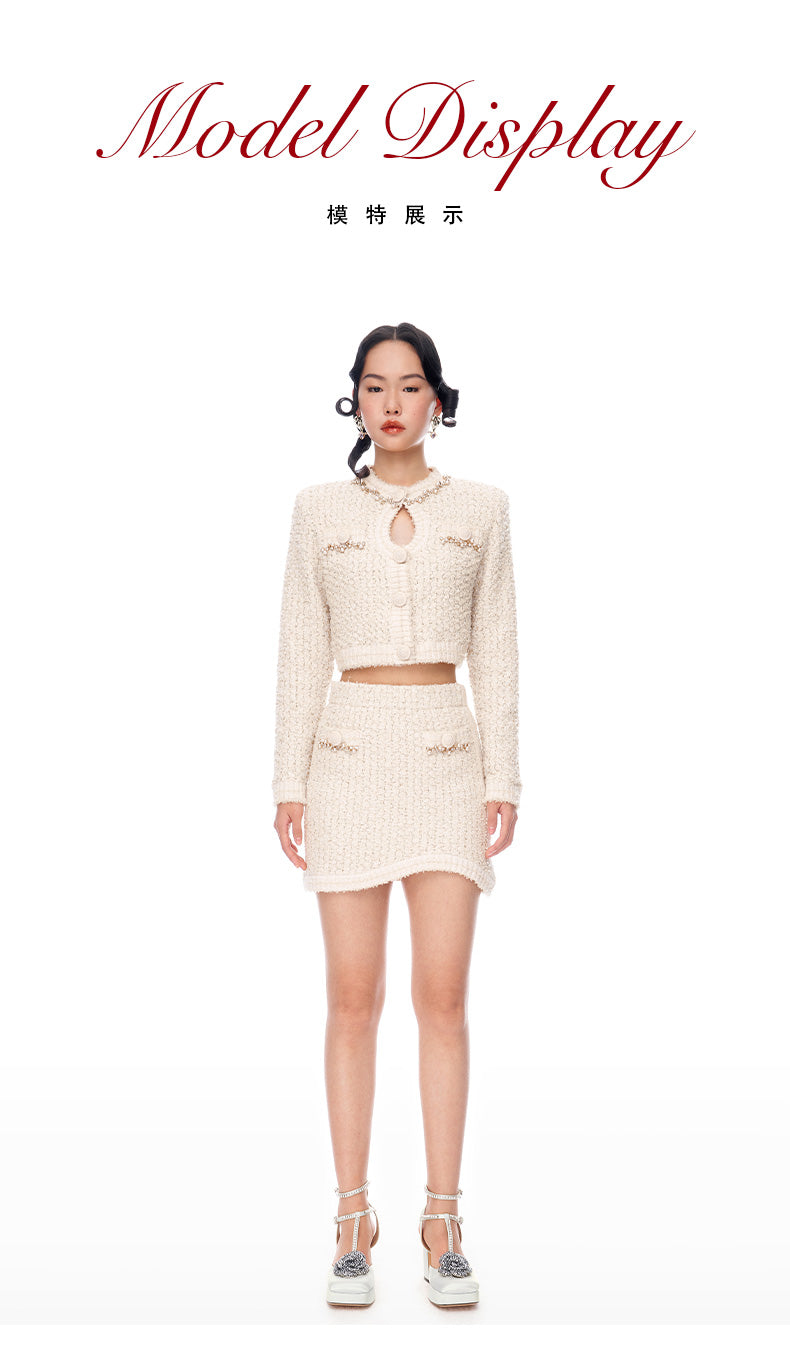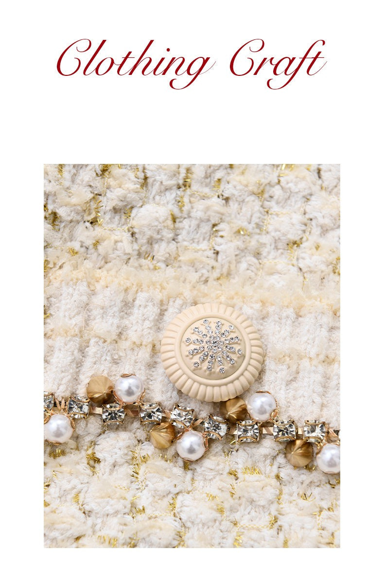 Envelop yourself in timeless elegance with this FAME Light Luxury Hand-Beaded Tweed Small Knitted Cardigan Jacket. Its chic, trendy design radiates effortless grace, making it an essential piece to add to any modern wardrobe. Exquisitely crafted, its delicate hand-beading lends an air of sophistication that is sure to make you stand out. Transform any outfit with this luxe cardigan.