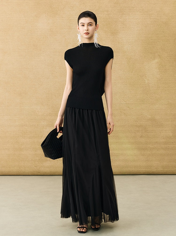 HECO Chinese comfortable neck sleeveless knitted T-shirt - QUEEN.