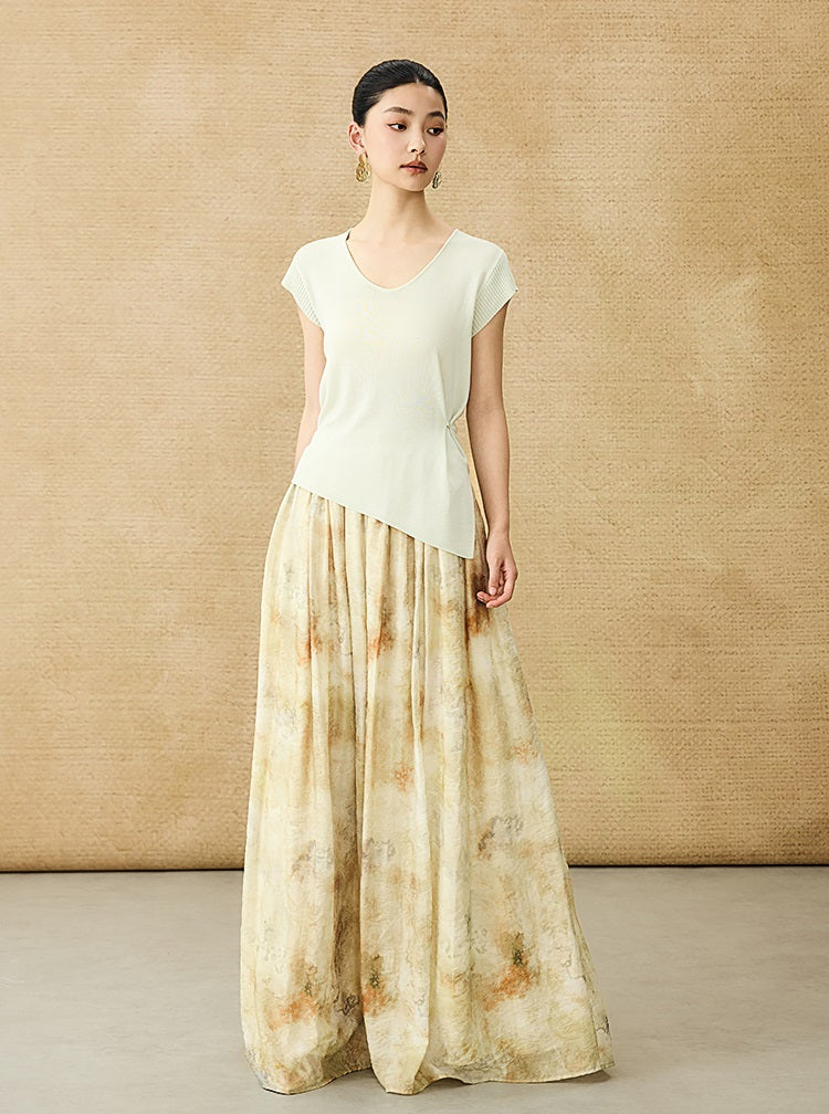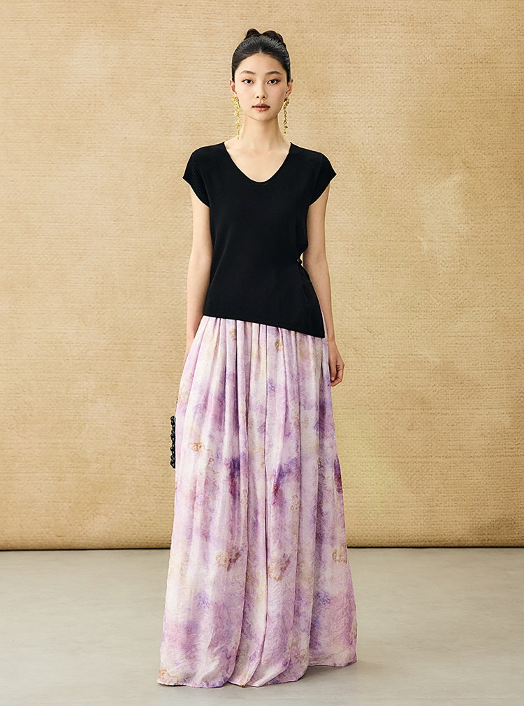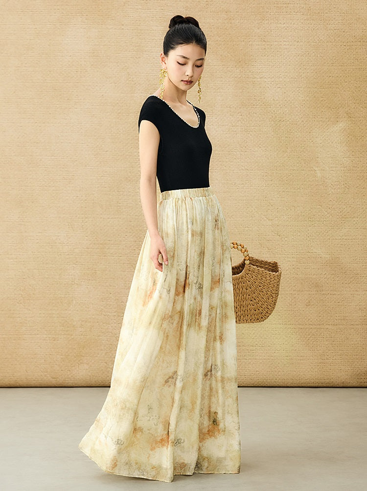 This elegant HECO Chinese skirt features a comfortable elastic waist and a flowing tie-dye print, combining traditional charm with contemporary style. The long, pleated design enhances movement and adds a graceful flare, making it perfect for both casual and dressy occasions. Designed for ease and sophistication, it offers a flattering fit with a distinctive artistic touch.