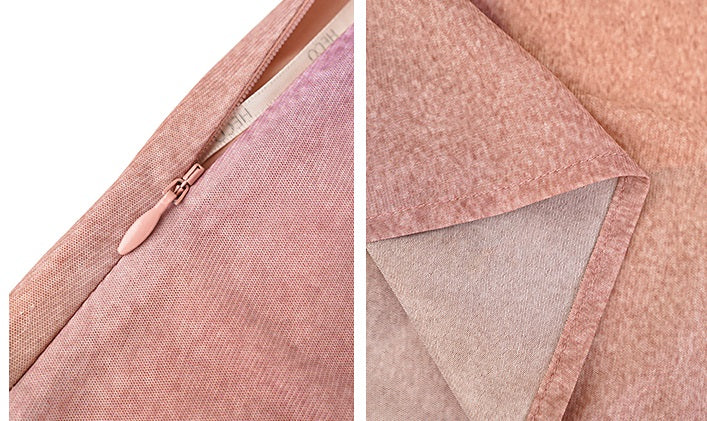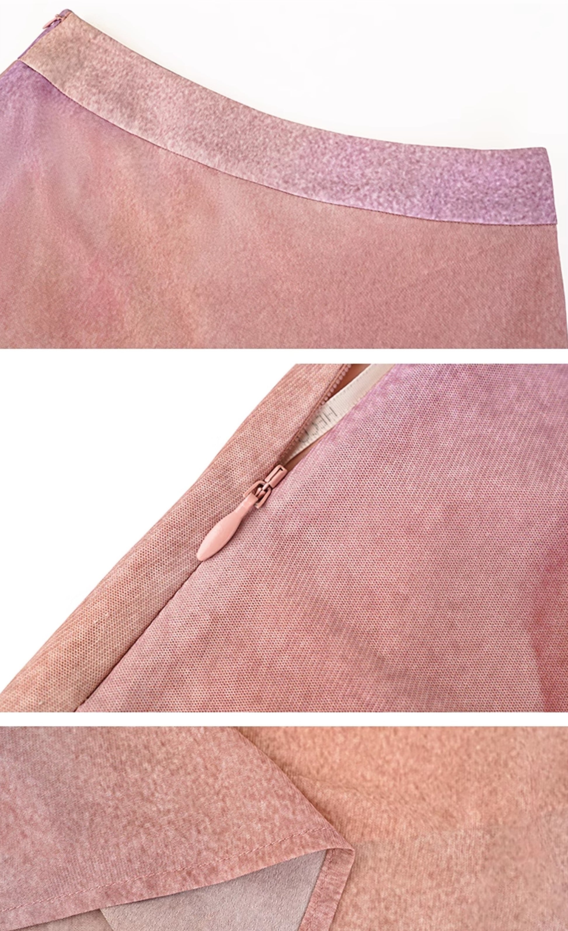 This ensemble features a sophisticated A-line skirt with a Chinese gradient floral design that flows gracefully, paired with a sheath-style short-sleeve top. The top’s round neckline complements the elegant silhouette, creating a refined look suitable for both professional and formal occasions. Together, they offer a balanced combination of comfort and style, enhancing a poised and polished appearance.