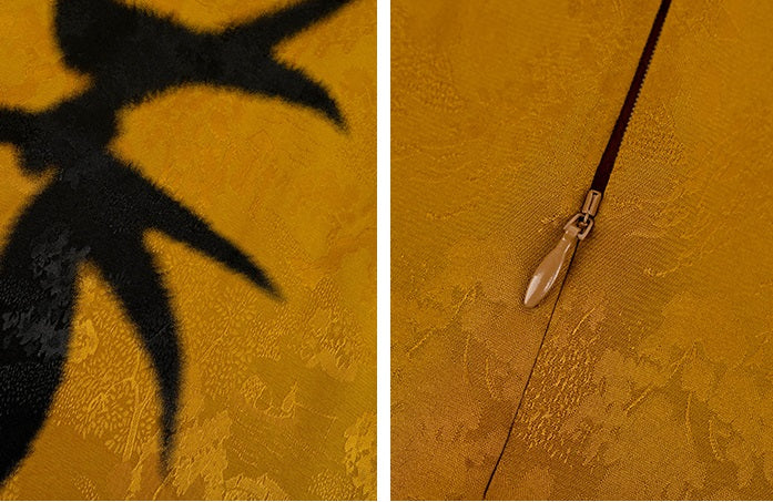 The HECO Chinese high-end acetate skirt features a long, straight silhouette with a subtle back slit for ease of movement. Adorned with delicate bamboo embroidery, it exudes refined femininity and craftsmanship. A discreet zipper ensures a sleek fit, making this skirt a sophisticated addition to any wardrobe.