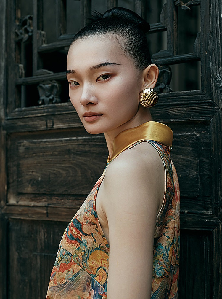 This short A-line dress features a stand collar and color-blocked design, highlighted by intricate golden dragon embroidery for a sophisticated nod to traditional Chinese artistry. Its structured silhouette balances modern style with cultural heritage, making it a versatile piece for elegant day or evening wear.