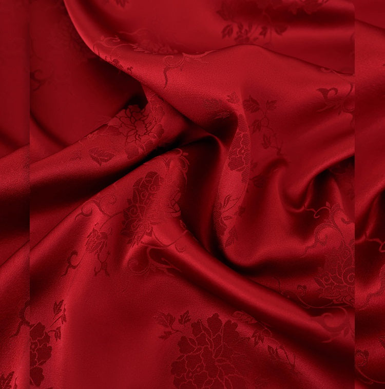 This elegant long straight skirt features a distinctive asymmetric design with a back slit that adds an element of sophistication and ease of movement. Made from acetate jacquard fabric, it offers a smooth, cool feel that gracefully covers while maintaining a refined silhouette. Perfect for those seeking a blend of traditional Chinese style with modern elegance.