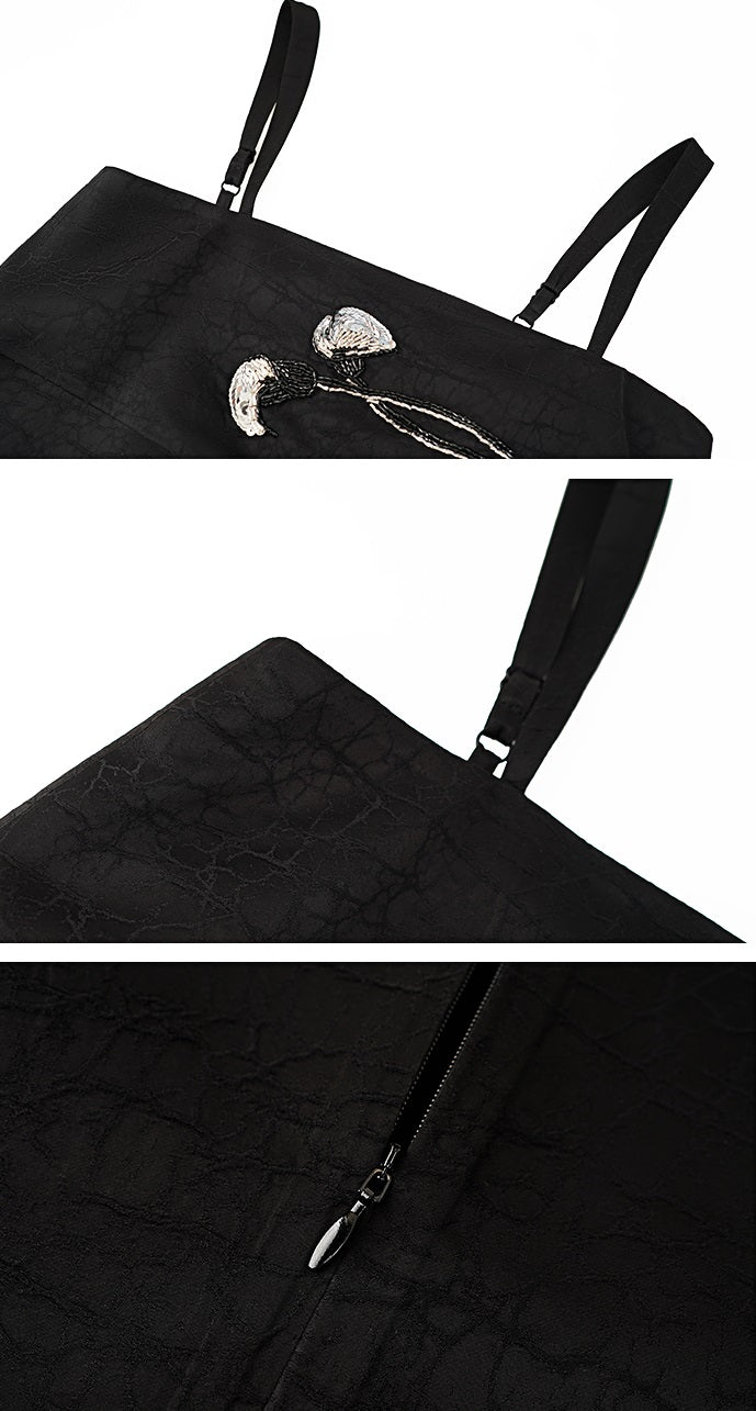 The HECO Chinese style camisole top showcases delicate bead embroidery, paired with slender spaghetti straps and a sleeveless design. This elegant piece blends traditional craftsmanship with modern minimalism, offering a refined silhouette perfect for layering or wearing solo.
