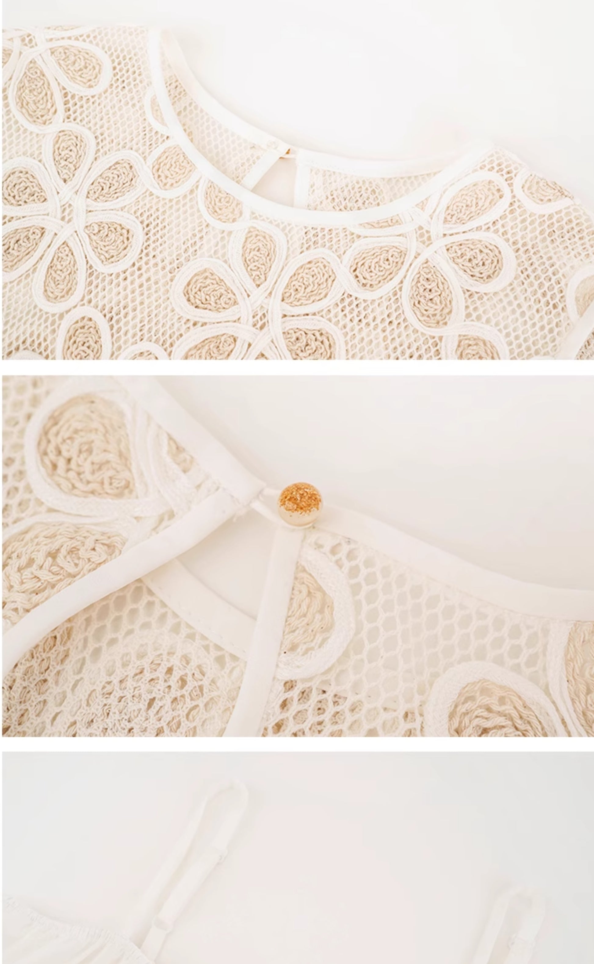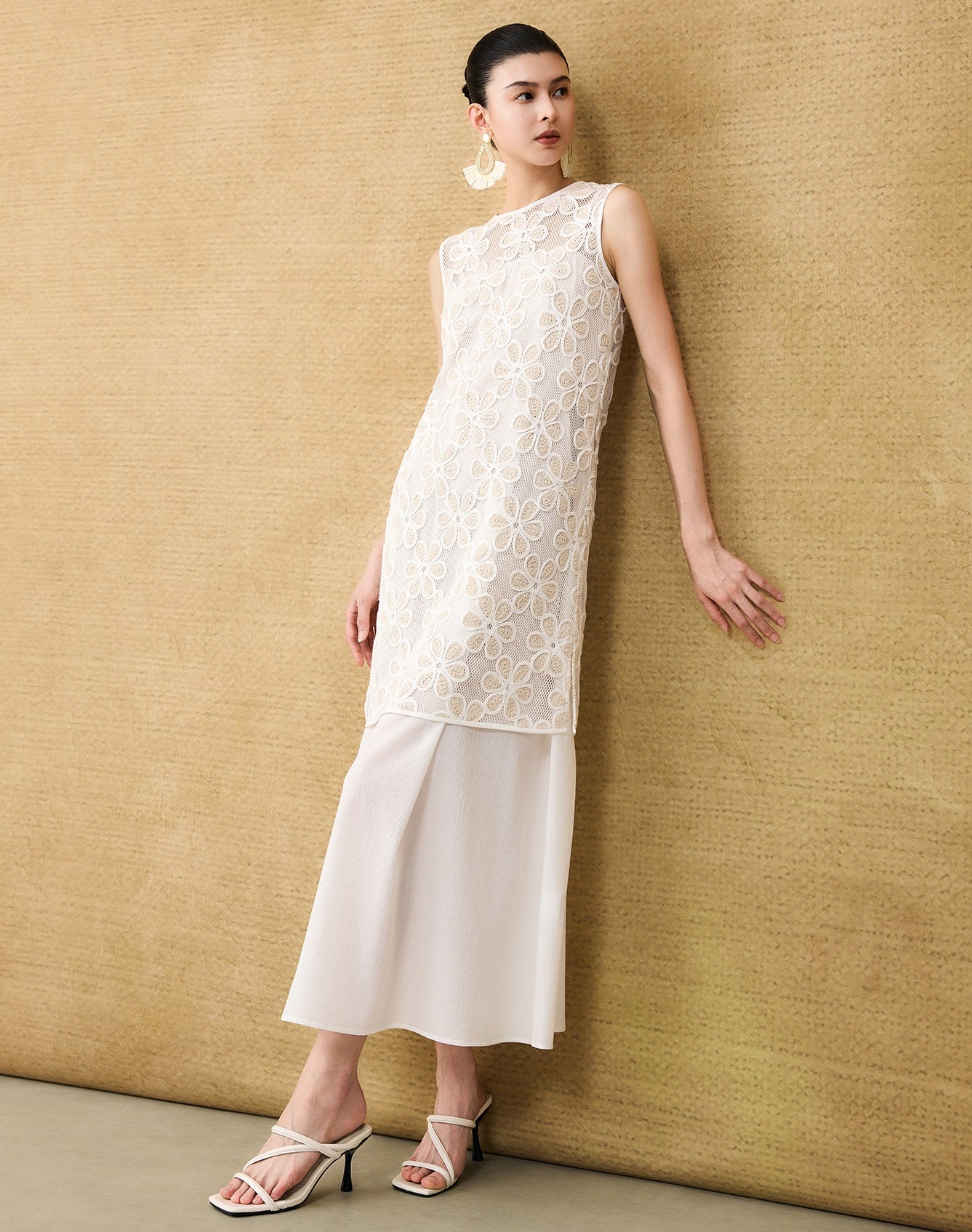 The HECO Chinese two-piece dress showcases intricate three-dimensional embroidery that adds texture and depth to its elegant design. Featuring a sleeveless style with delicate spaghetti straps and a classic crew neckline, this set combines traditional craftsmanship with modern appeal for a refined and versatile look.