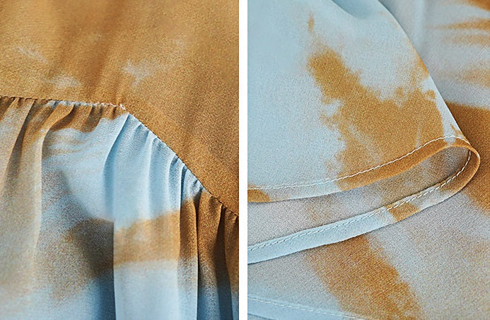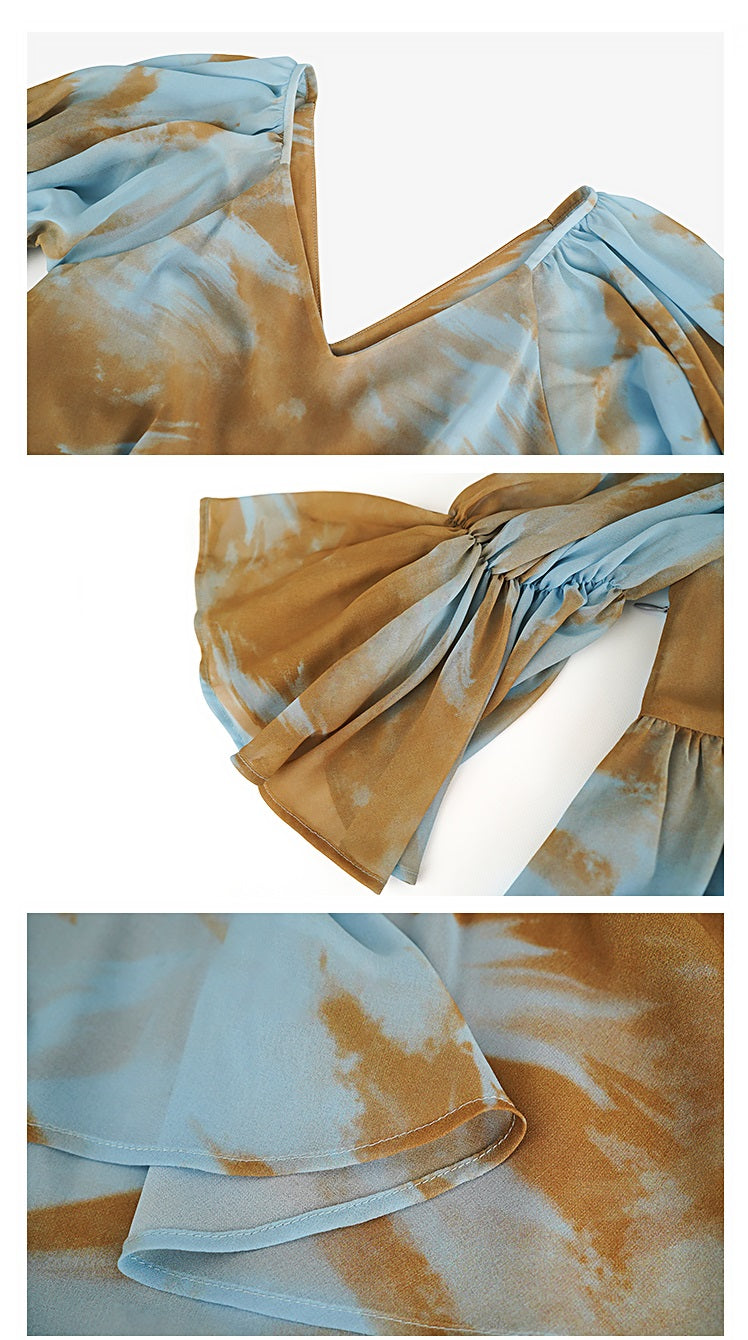HECO Chinese V-neck wavy sleeve summer big resort dress - AMAZE .