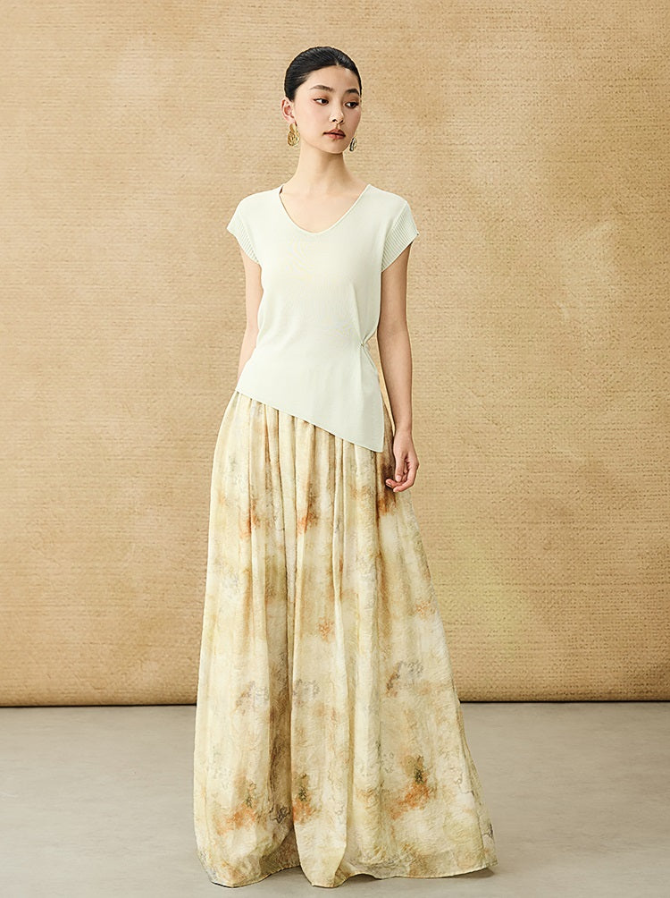 This sleeveless knit top features a round neck and an asymmetric tied hem, blending contemporary design with comfort. Its versatile fit and unique side buckle detail elevate your wardrobe with a refined yet edgy appeal, perfect for pairing with a variety of outfits. The breathable knit fabric ensures all-day wearability without sacrificing style.