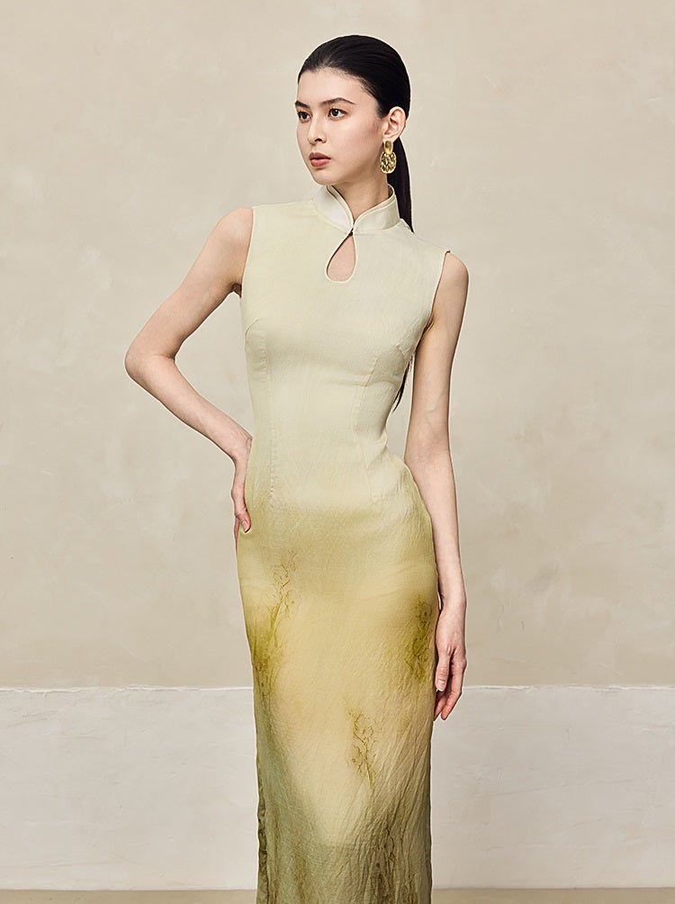 HECO Silk Smudge Chiffon Cheongsam midi sleeveless Dress Women - SIGHT.