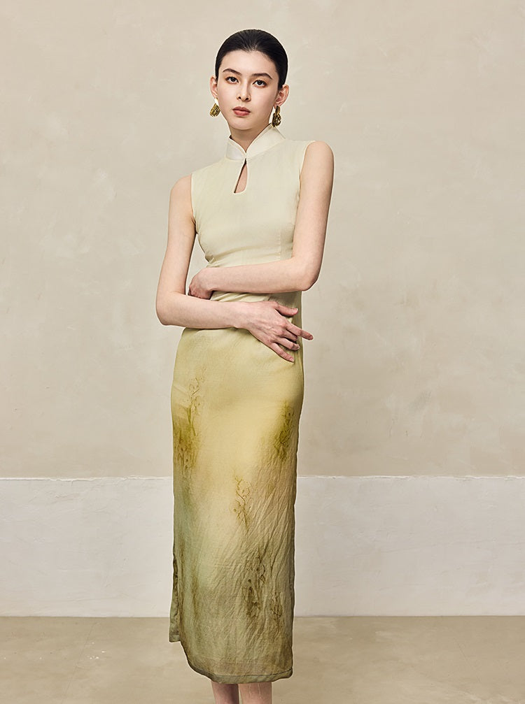 Elevate your summer wardrobe with HECO's Silk Smudge Chiffon Cheongsam Dress. Its chic, classy design is highlighted by a flattering midi length and sleeveless design. Available in 2 colors, green and yellow-green, with a unique slit detail. Perfect for making a statement on any occasion.