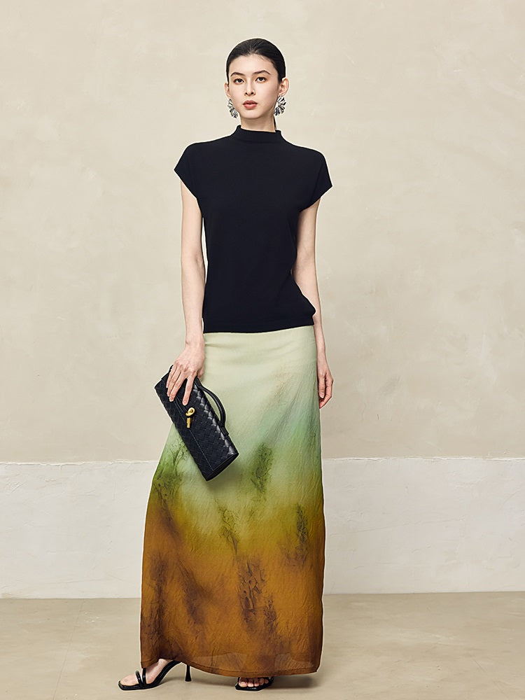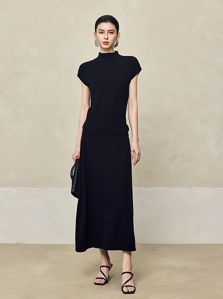HECO Sleeveless Slim Mock Collar Red Black Gray Knit Top - THRONE.