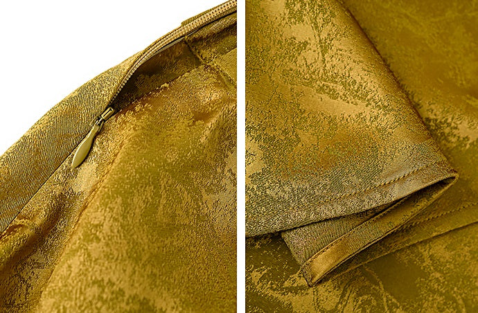 This HECO Skirt exudes elegance and beauty with its maxi length and bold black, red, and gold colors. The convenient side slit, and zipper add modern functionality to this traditional national style skirt. Elevate your wardrobe with this beautiful piece.