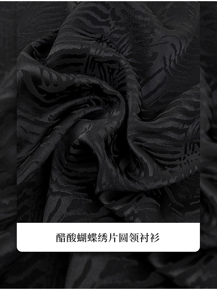 HECO Jacquard Round Neck Short Sleeve Black White Shirt Top Woman - GRACE.