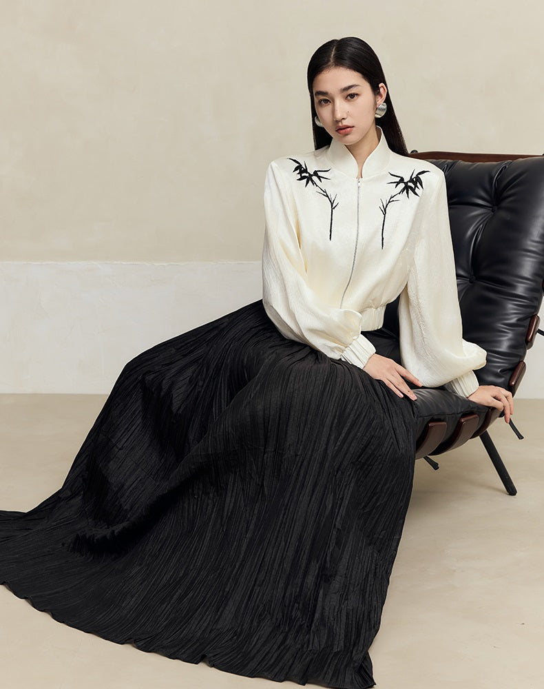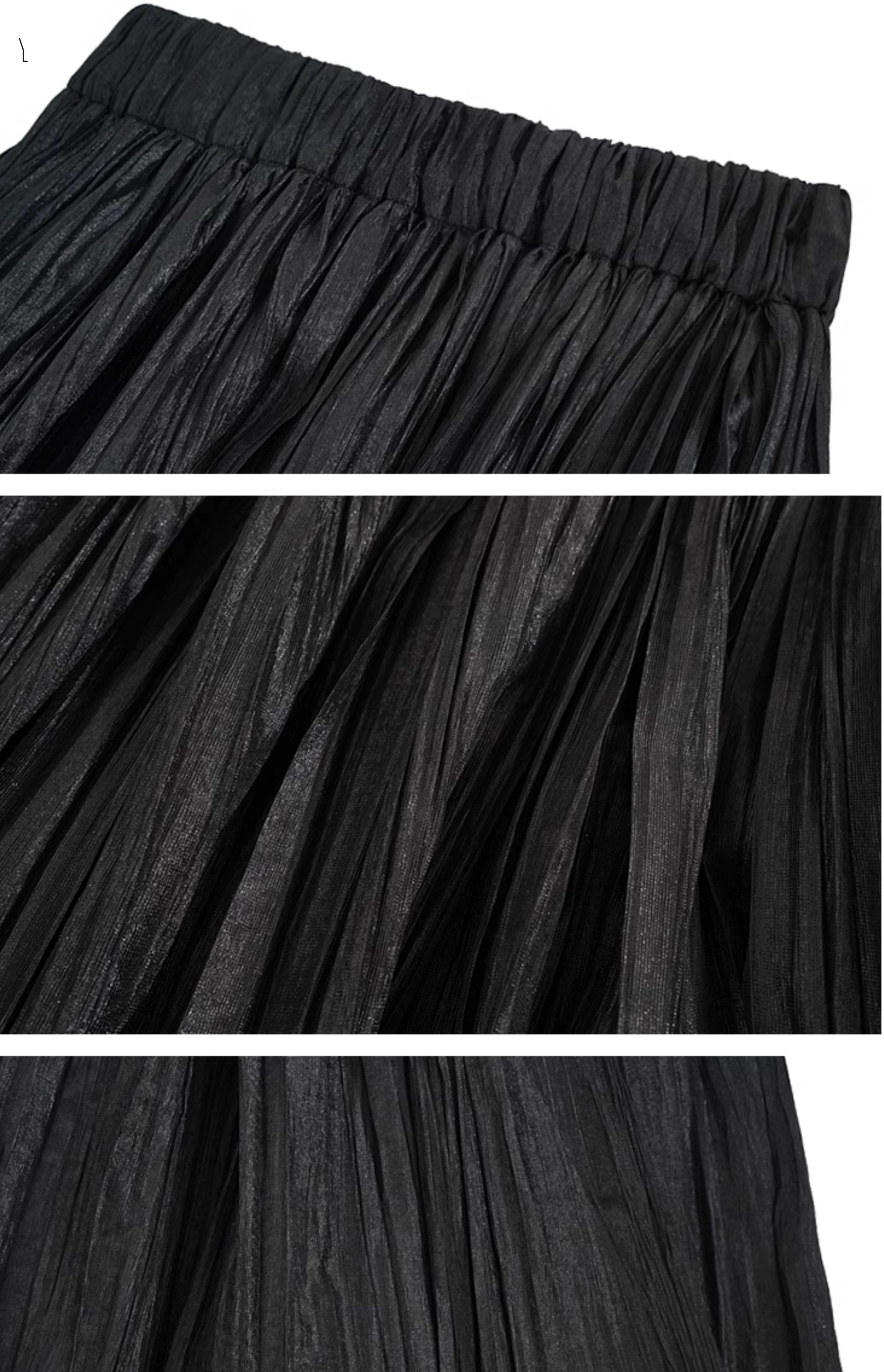 HECO striped texture swing high waist black green women's long skirt - muse.