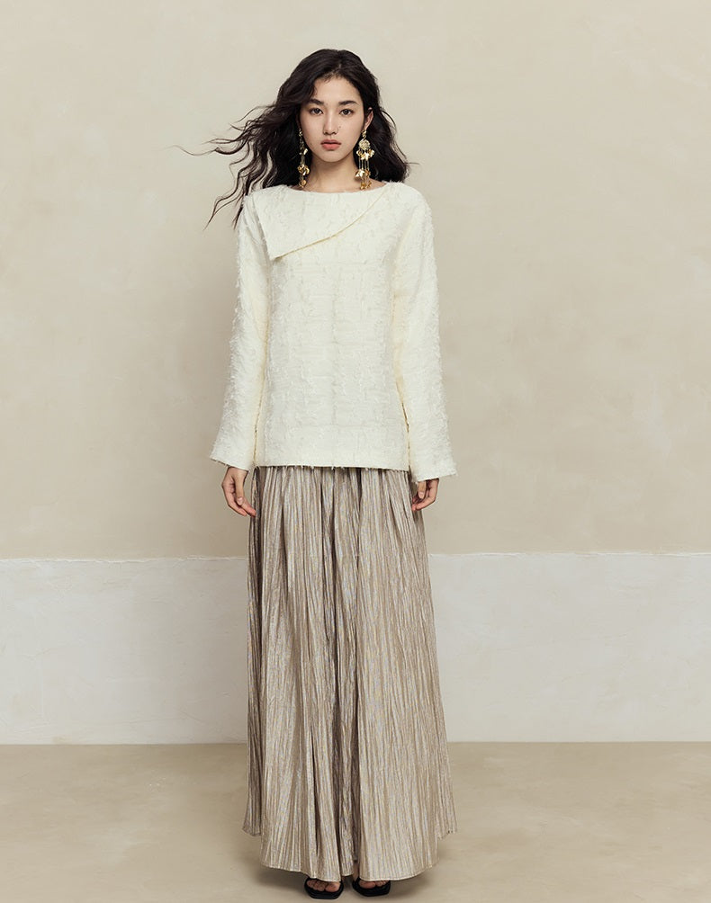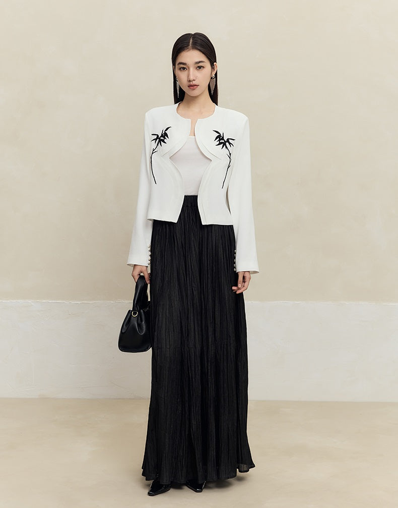 This HECO maxi skirt combines a high waist silhouette with a flowing swing design, crafted from a blend of 62.6% polyester and 37.4% polyamide for durability and comfort. Featuring a subtle striped texture in black and light green, it offers a refined yet dynamic look, perfect for elevating your wardrobe with effortless elegance.