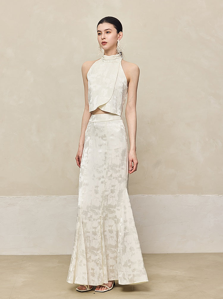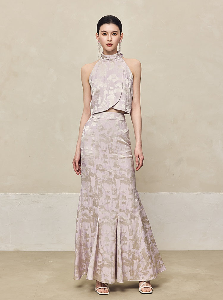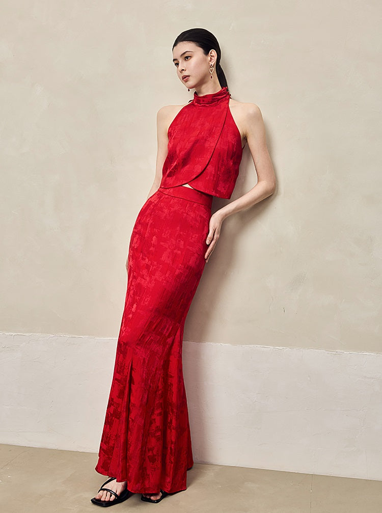 HECO Jacquard Fishtail High Waist Red Purple White Skirt Women - GRAVITY.