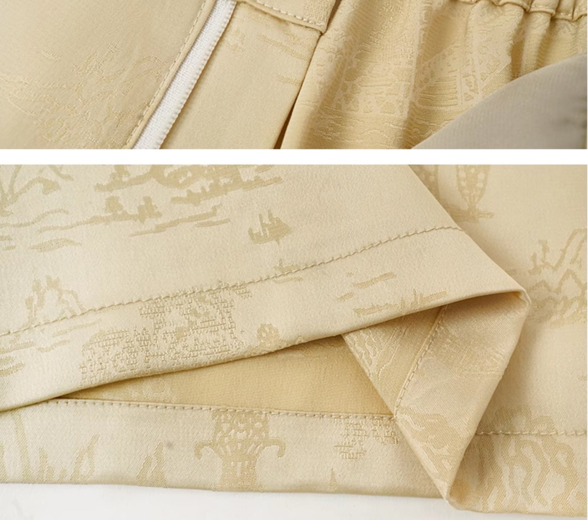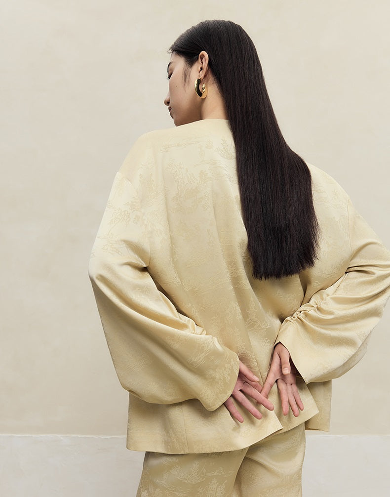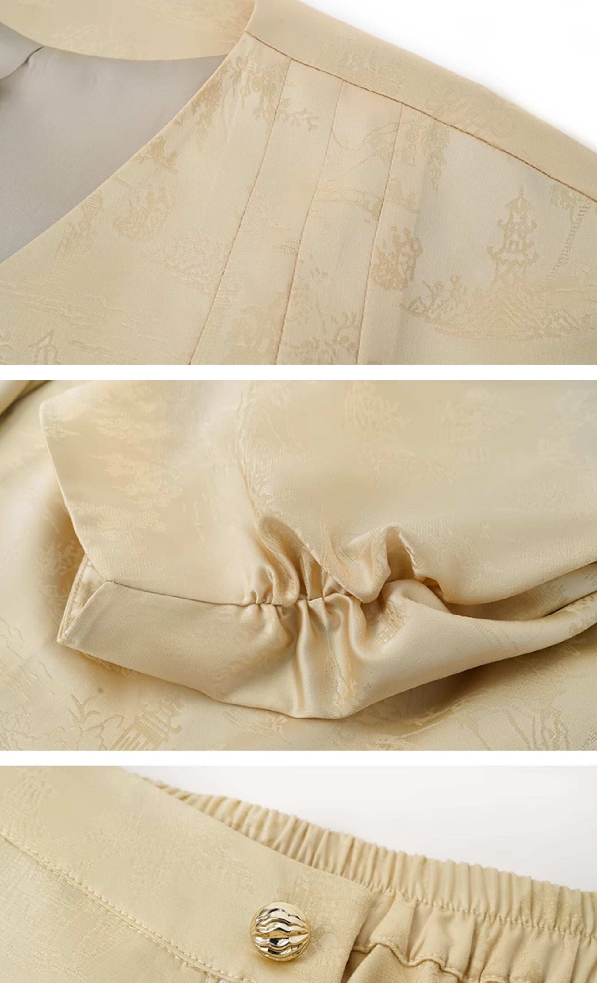 HECO Shan Ting Acetate Jacquard Suit Loose black yellow Top Pants Women - favour.