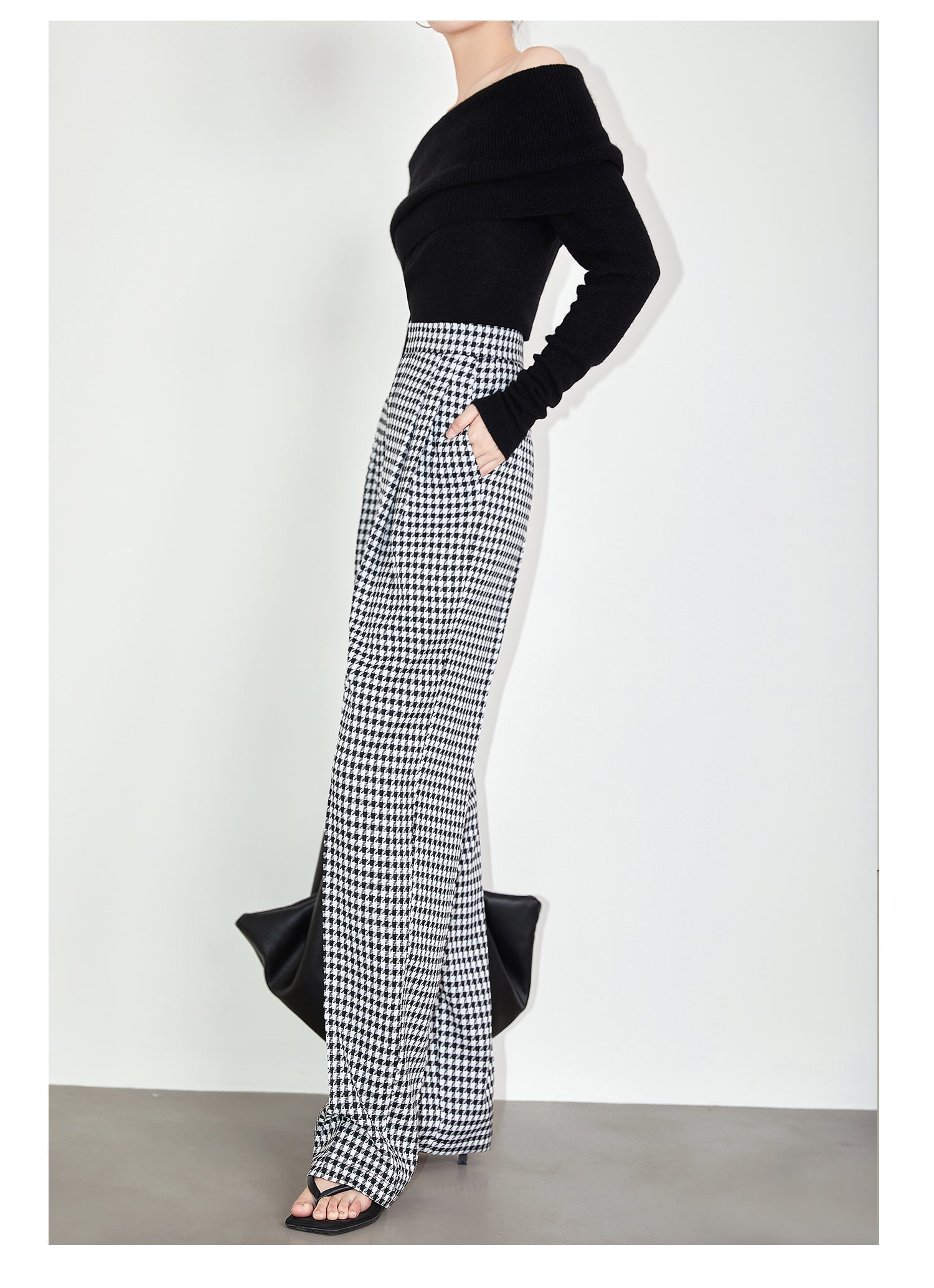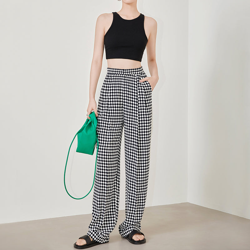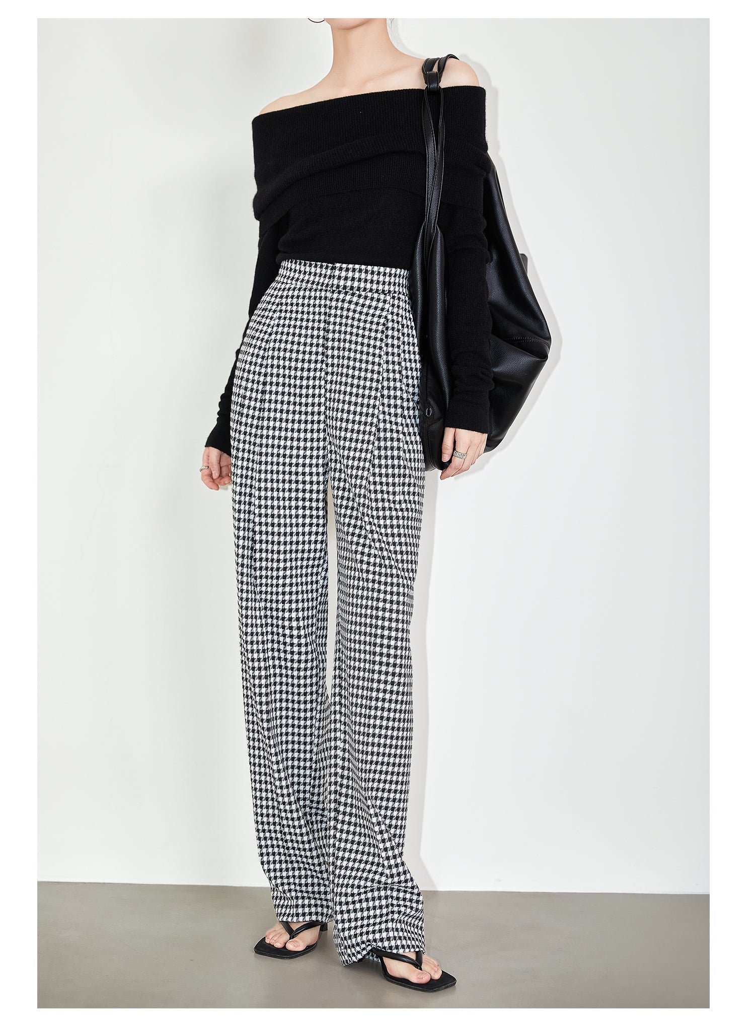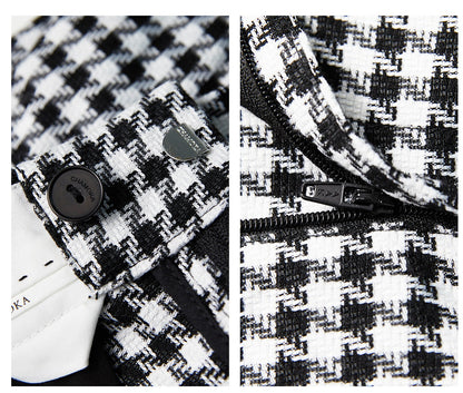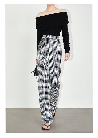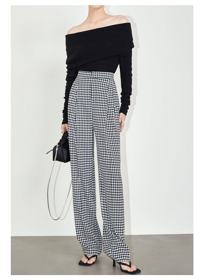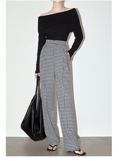 High-quality black white plaid houndstooth casual high-waist pants trouser - Tilda