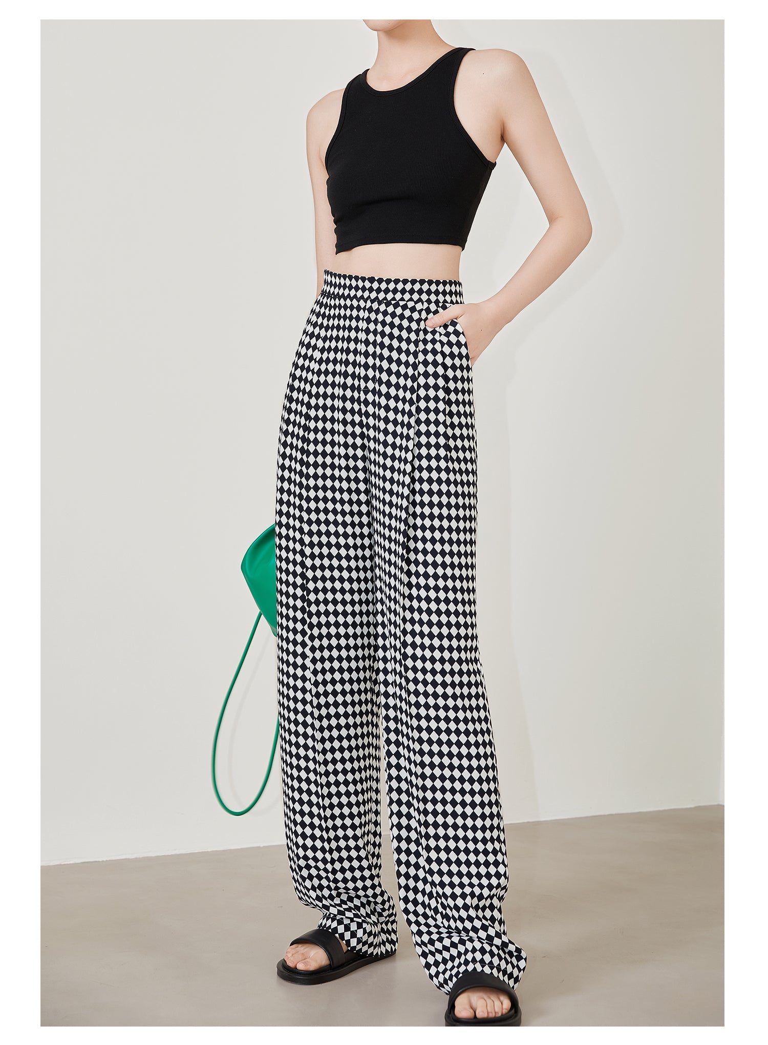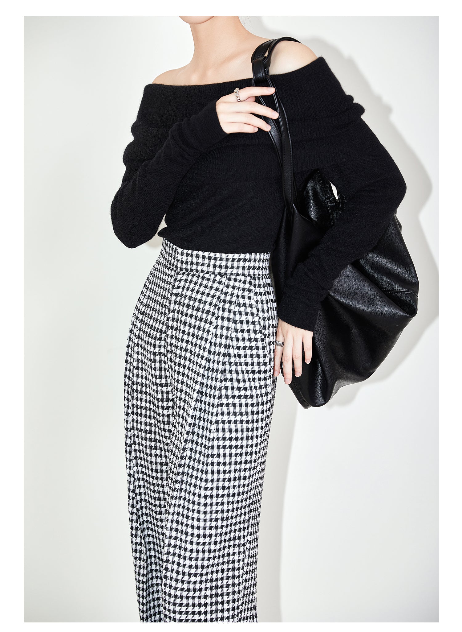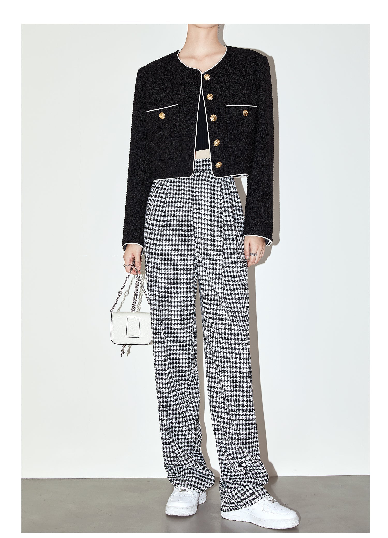 High-quality black white plaid houndstooth casual high-waist pants trouser - Tilda