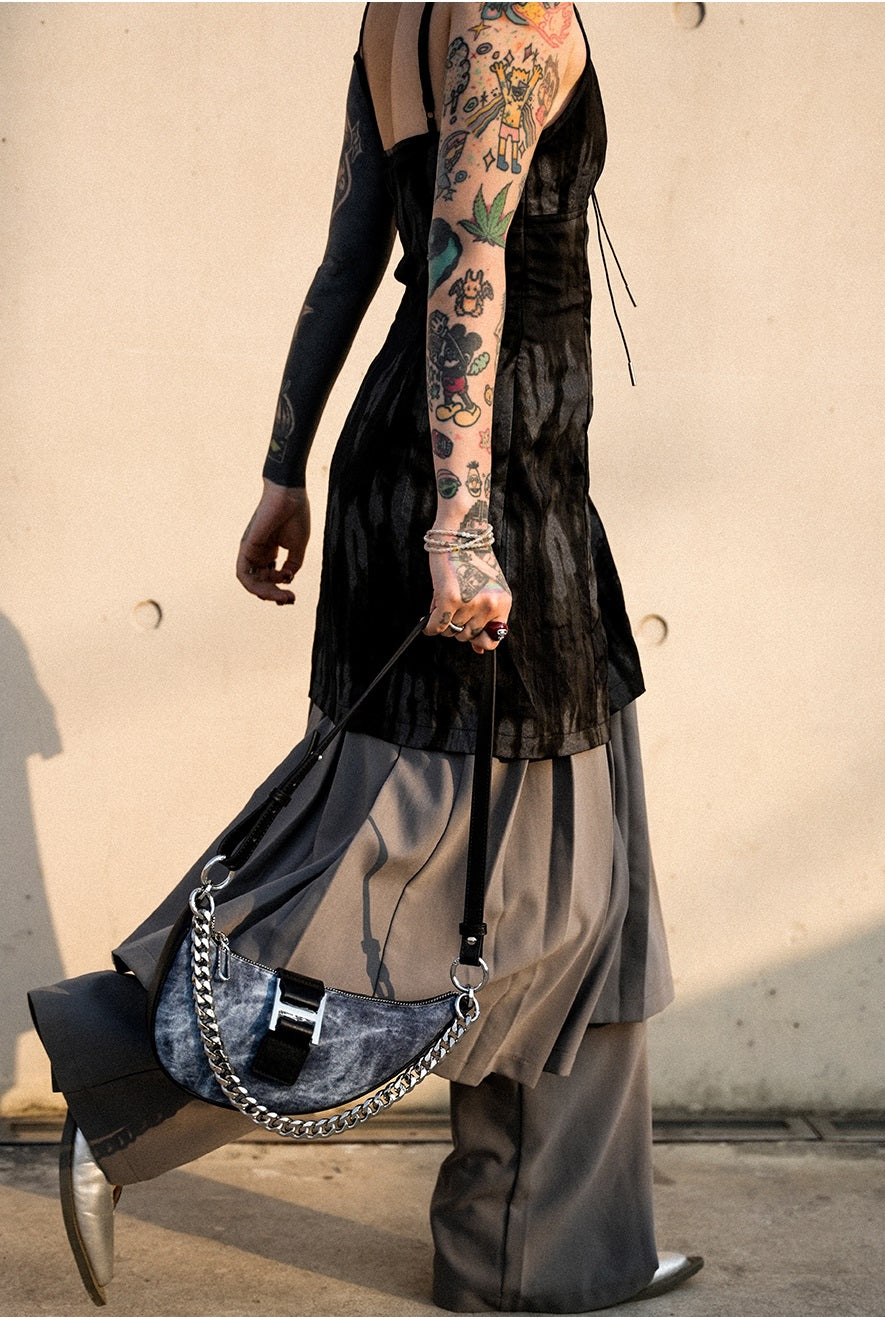 The IUBALLET New Ink Underarm Bag showcases expert craftsmanship in premium leather with a distinctive piano-shaped design. It features a leather strap complemented by chain detailing, blending durability with elegance. The bag offers one main compartment and a secure zipper secret pocket, both accessible through a zipper closure, ensuring organized and stylish storage for everyday essentials.