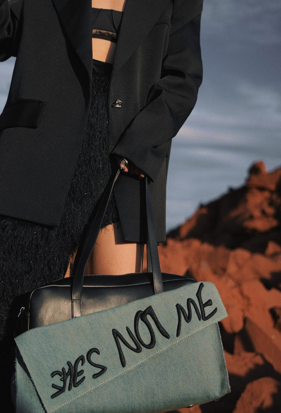 The IUBALLET Two-Faced Large Bag features a versatile design with one main pocket, an insert pocket, and a hidden zipper pocket for organized storage. Its zipper opening ensures secure access, while the removable denim outer shell reveals an additional insert pocket behind it. Crafted with premium leather accents, this bag offers both functionality and sophisticated style for everyday use.