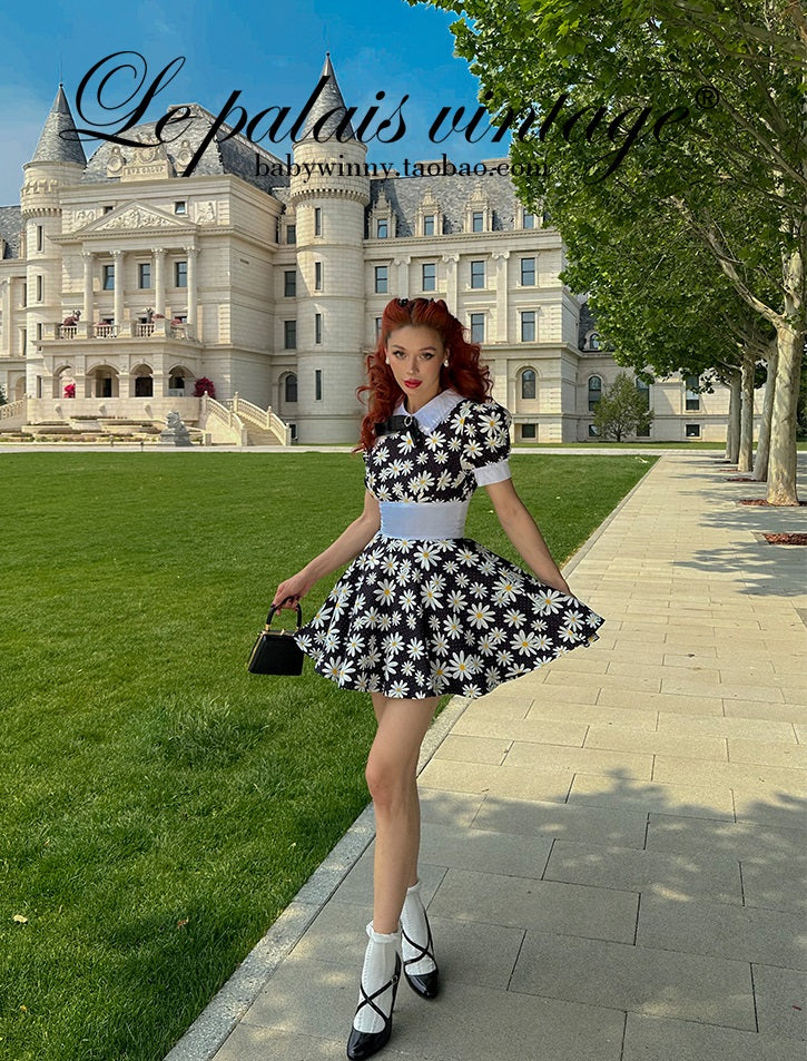 Le Palais Vintage Doll Puff Sleeve Cinched Waist Dress-FANA