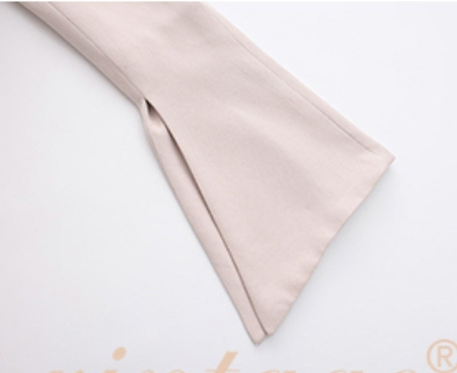 Le Palais Vintage Elegant Off-White Crop Jacket + High Waist Wide-leg Pants-MARY.
