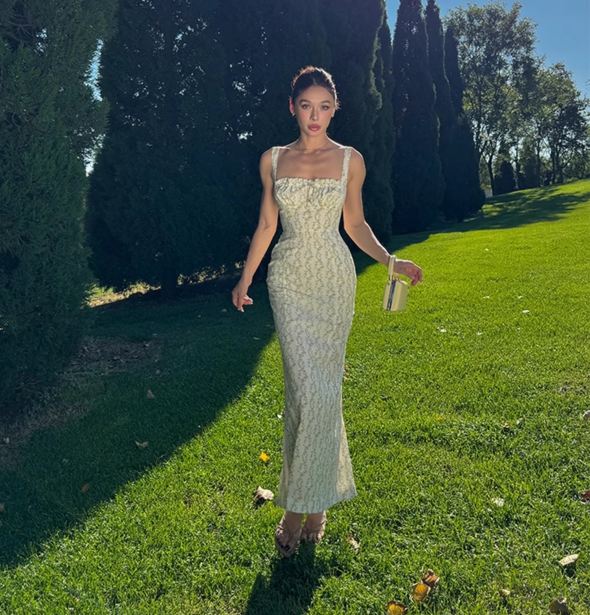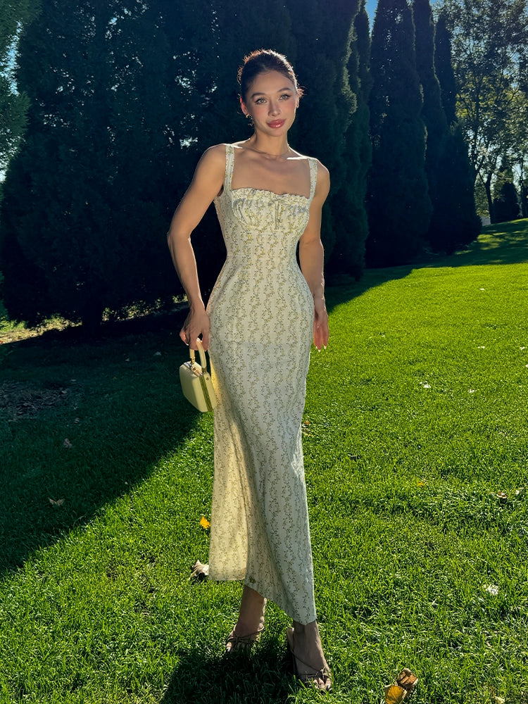 Elevate your style with the floral goose yellow cotton slim maxi dress. Crafted from breathable cotton, its slim silhouette and vibrant floral pattern create a flattering, effortlessly chic look perfect for any occasion.