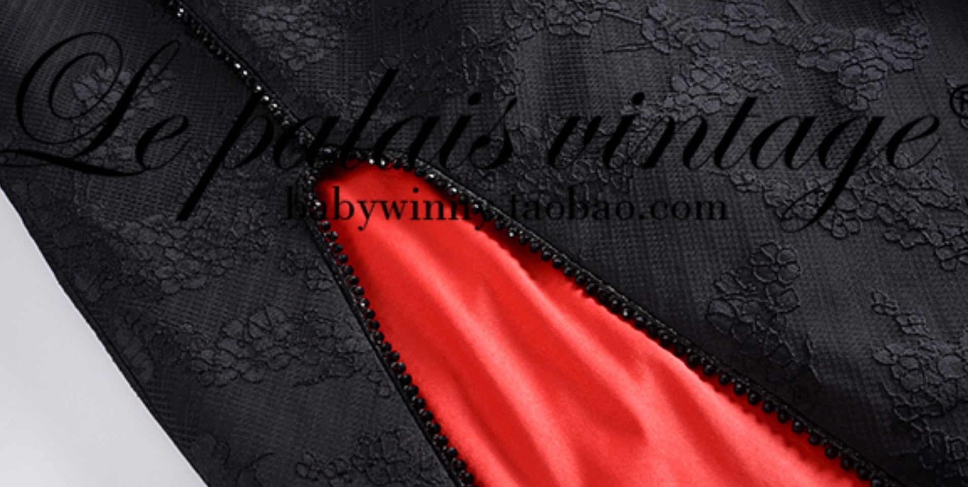 Le Palais Vintage Lace Dark Pattern Hong Kong Style Thin Black Long Dress-CHID
