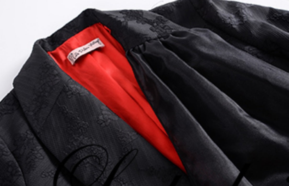 Le Palais Vintage Lace Dark Pattern Waist Black Slim Skirt Coat-CHASE