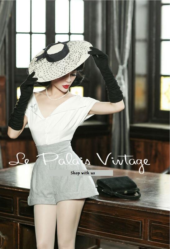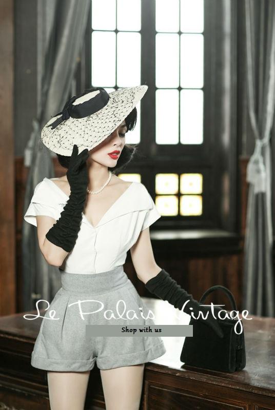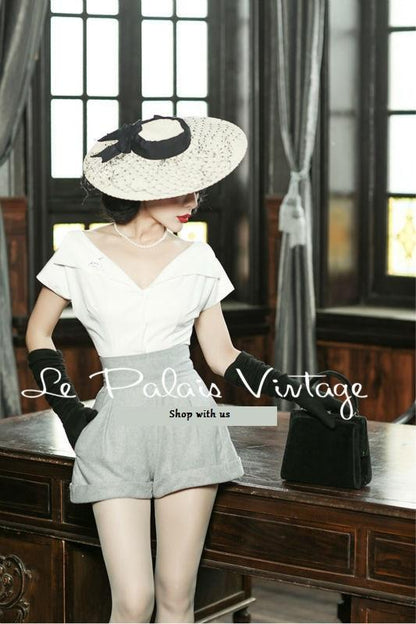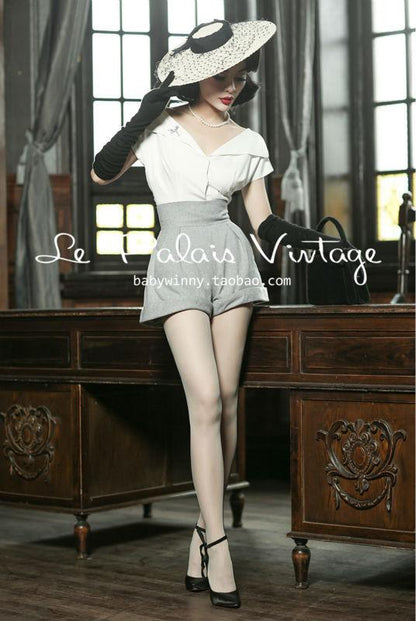 Le Palais Vintage Limited elegant retro classic tall waist woolen shorts and shirt- Dilia