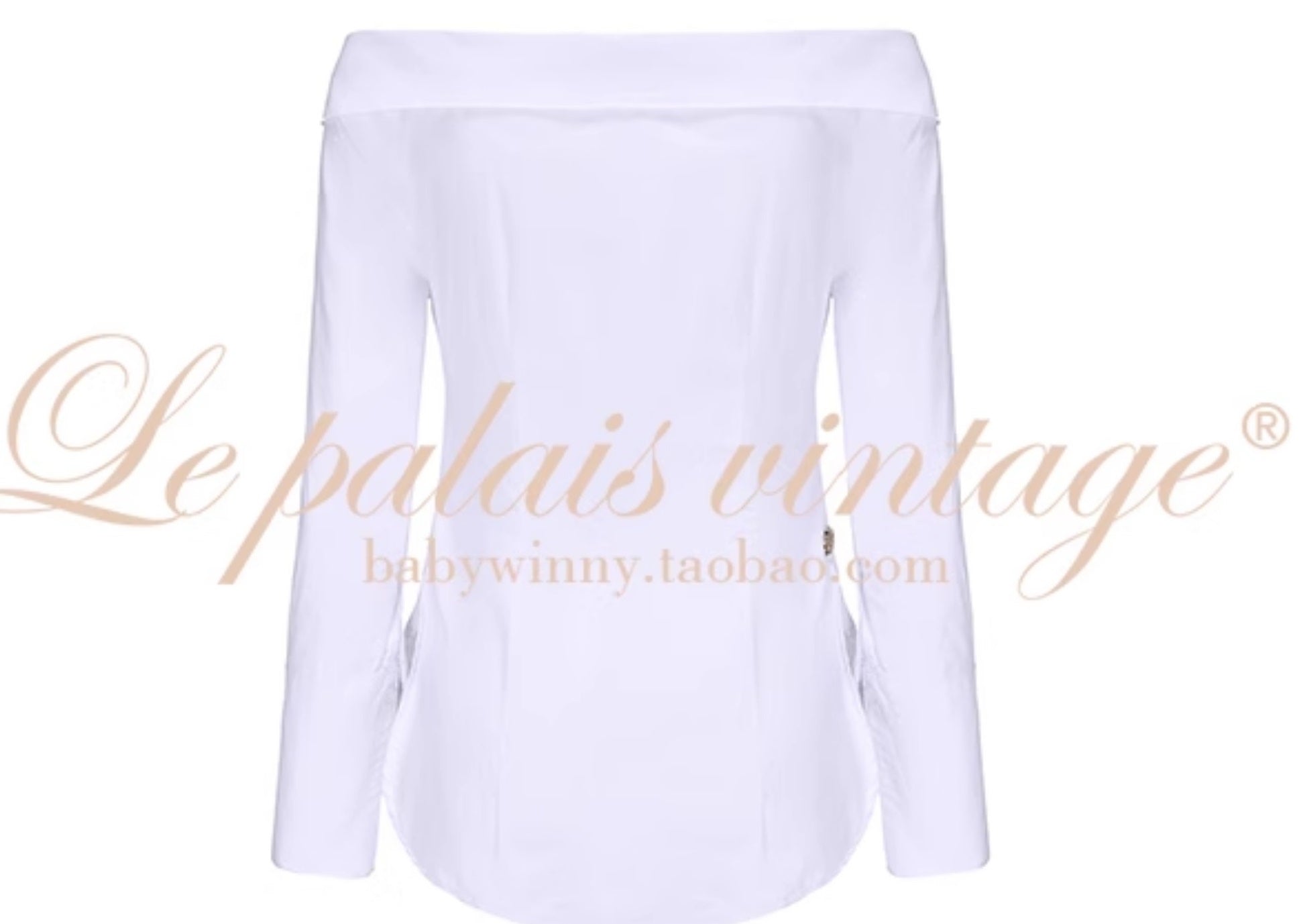 Le Palais Vintage Original languid sexy off-the-shoulder slim white shirt-BEA.