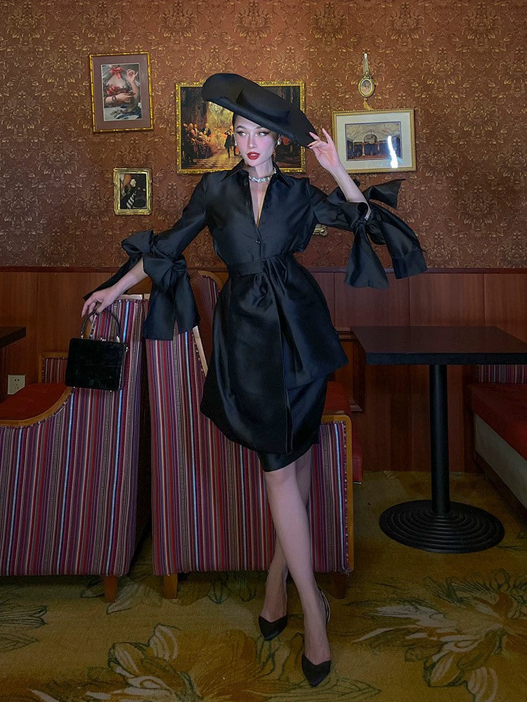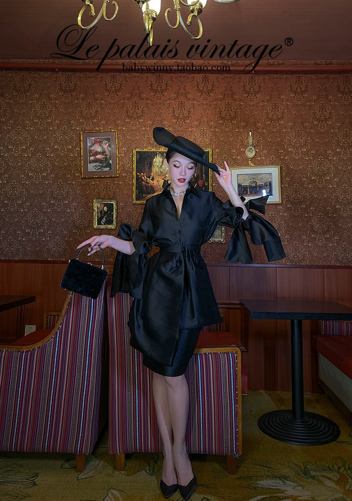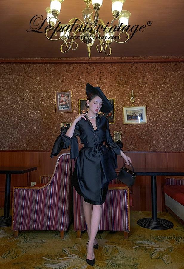 Le Palais Vintage Original Vintage Black Irregular Luxury High-waisted Pencil Skirt-GAL