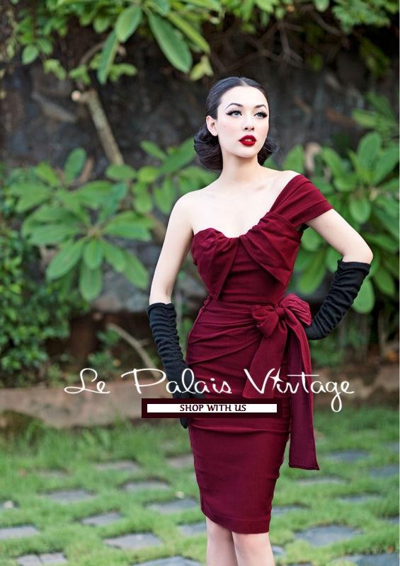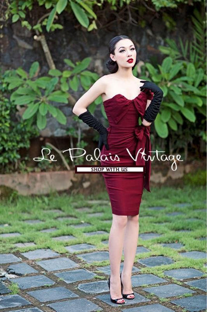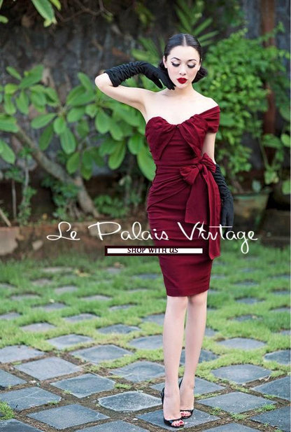 Le palais vintage Royal wine red fold bow sheath sexy dress- Bilo