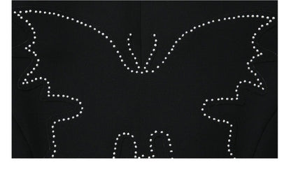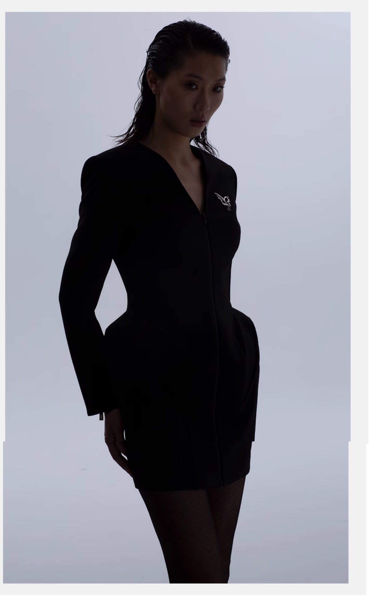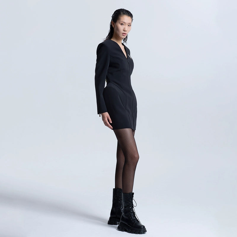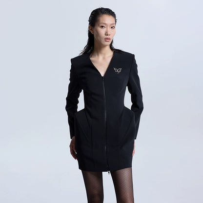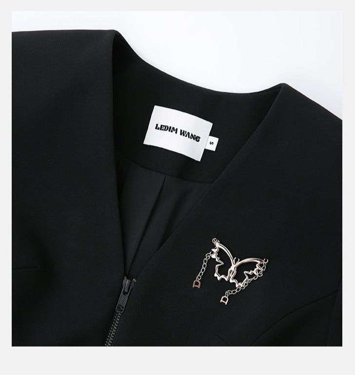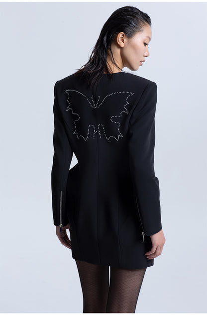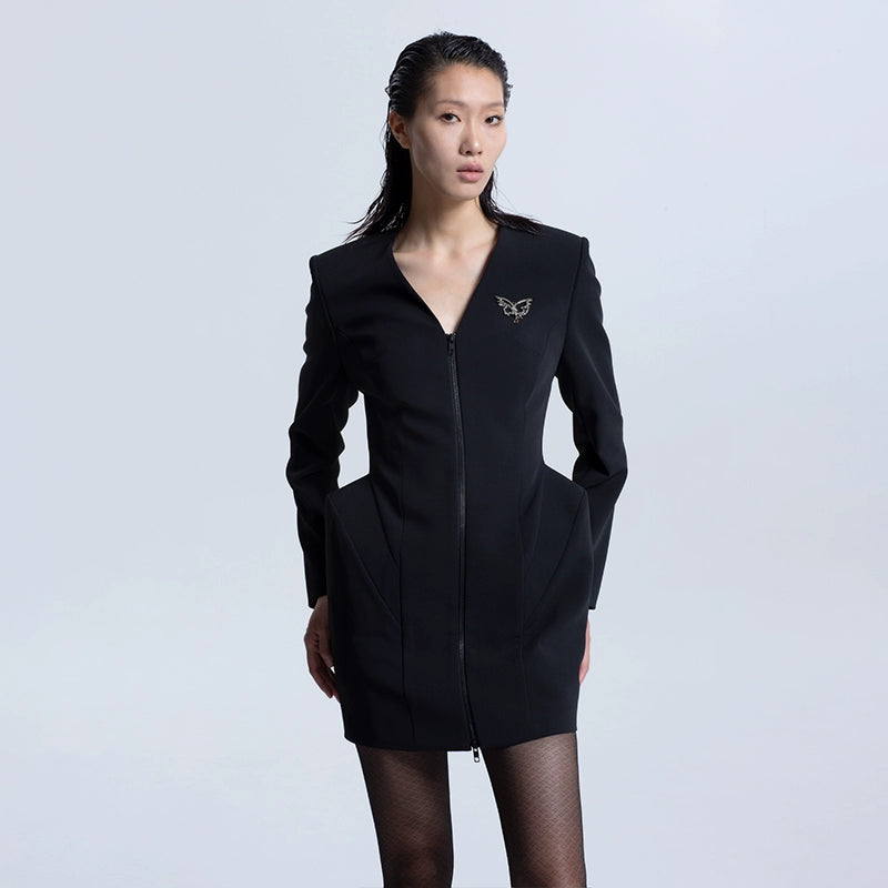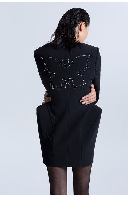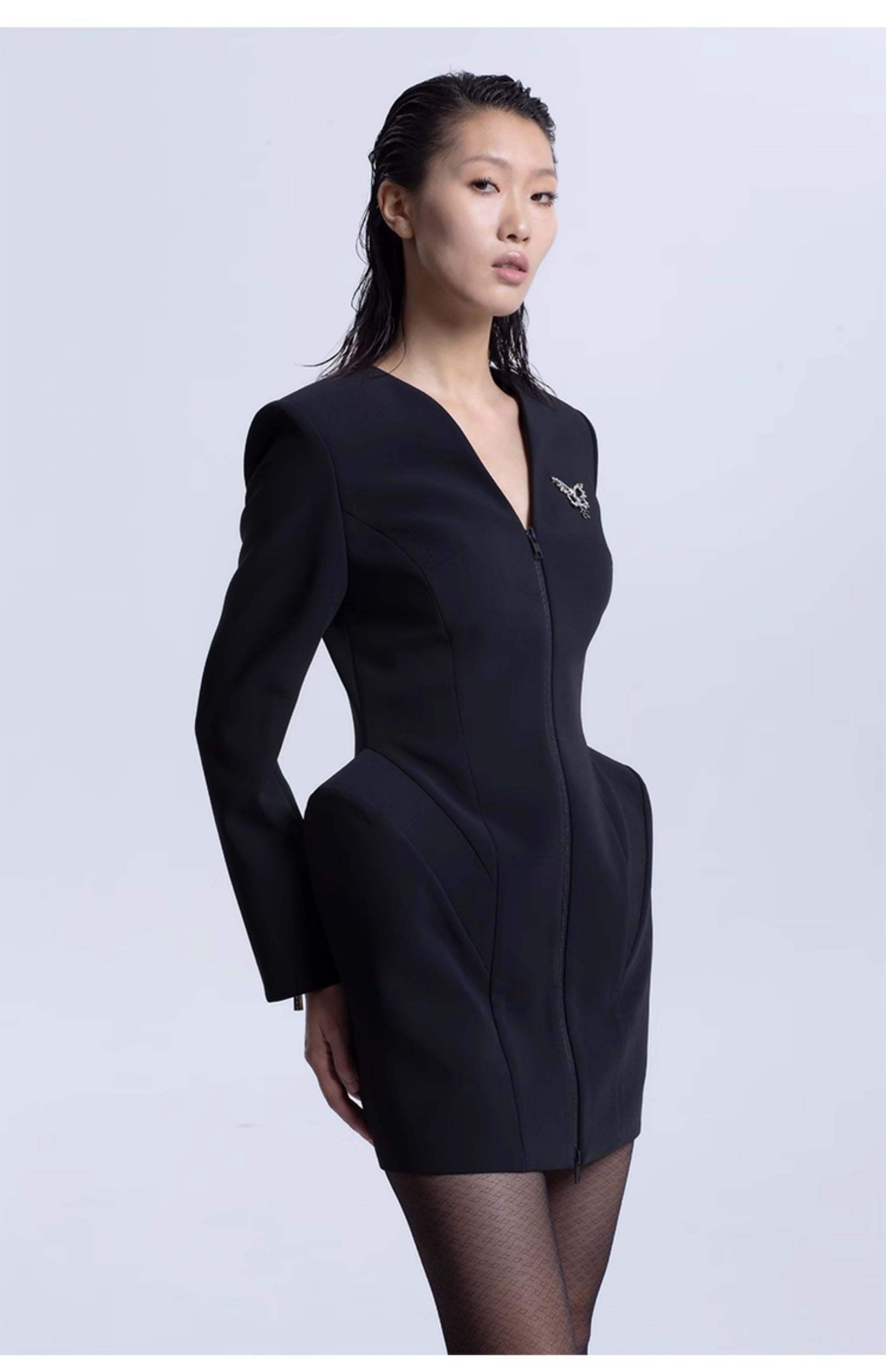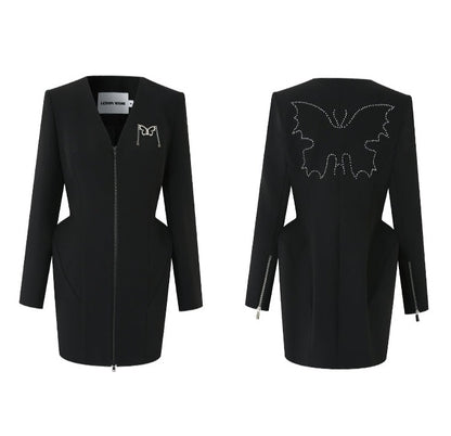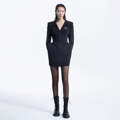 LEDIM W V-neck butterfly patch long sleeve hourglass stuctured little black dress - Lioe