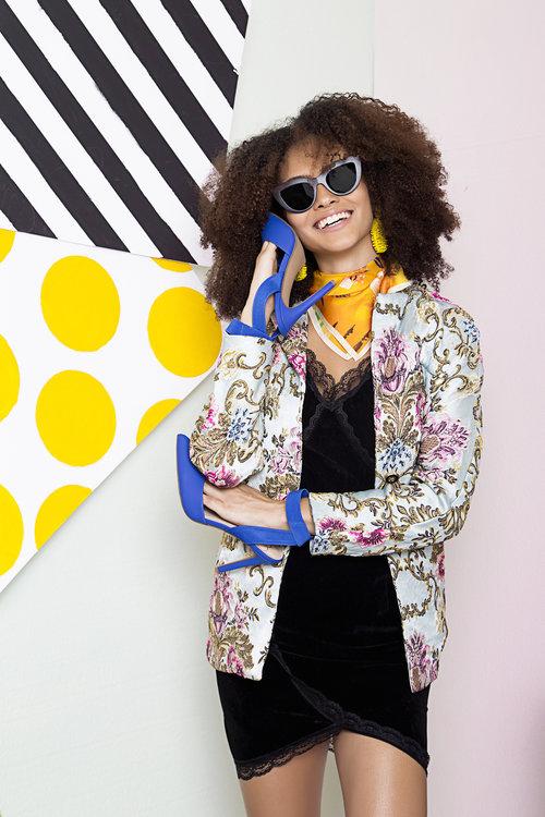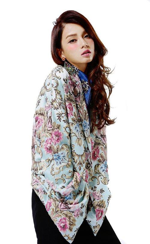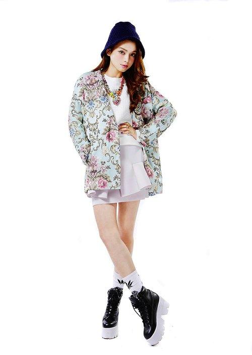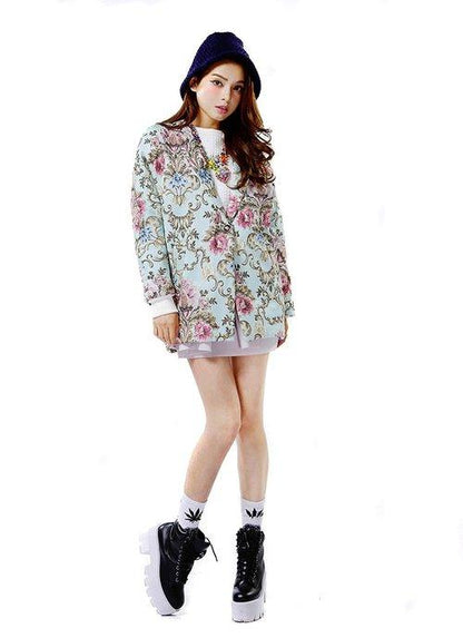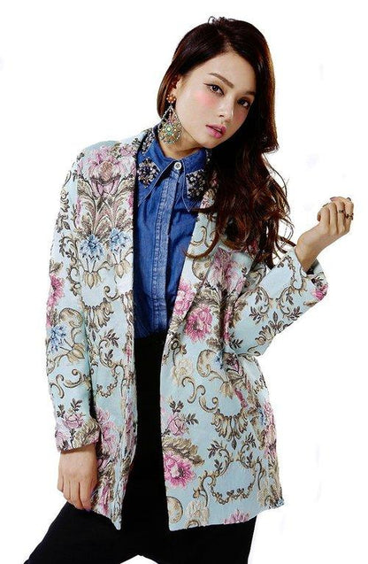 Limited edition jacquard vintage embroidered pastel blue blazer- Hanako