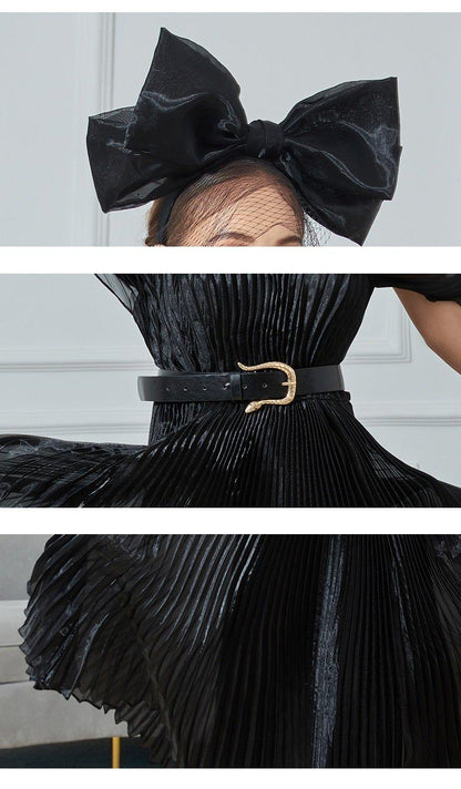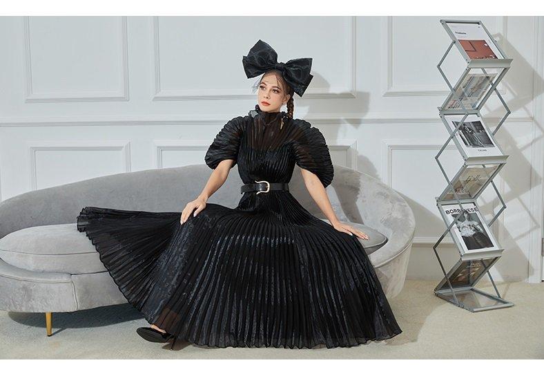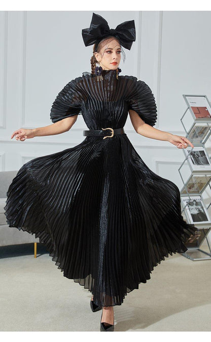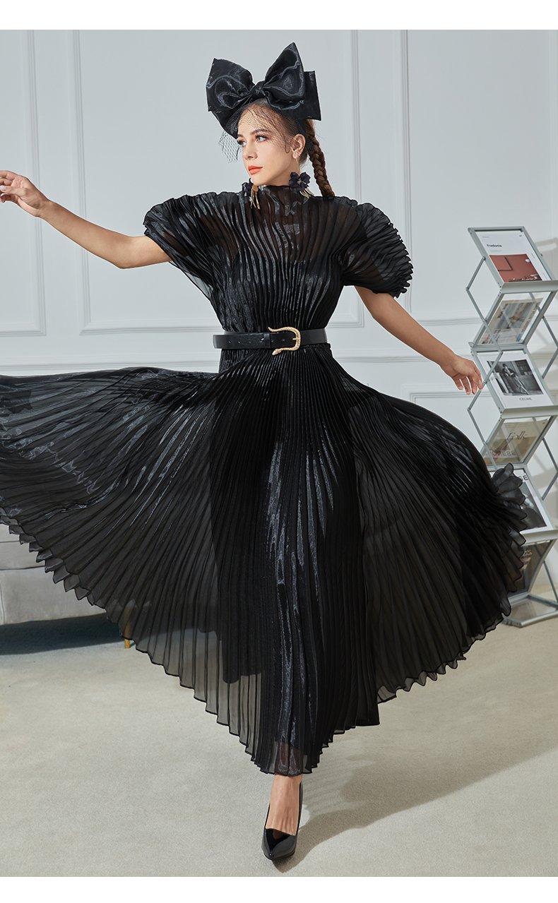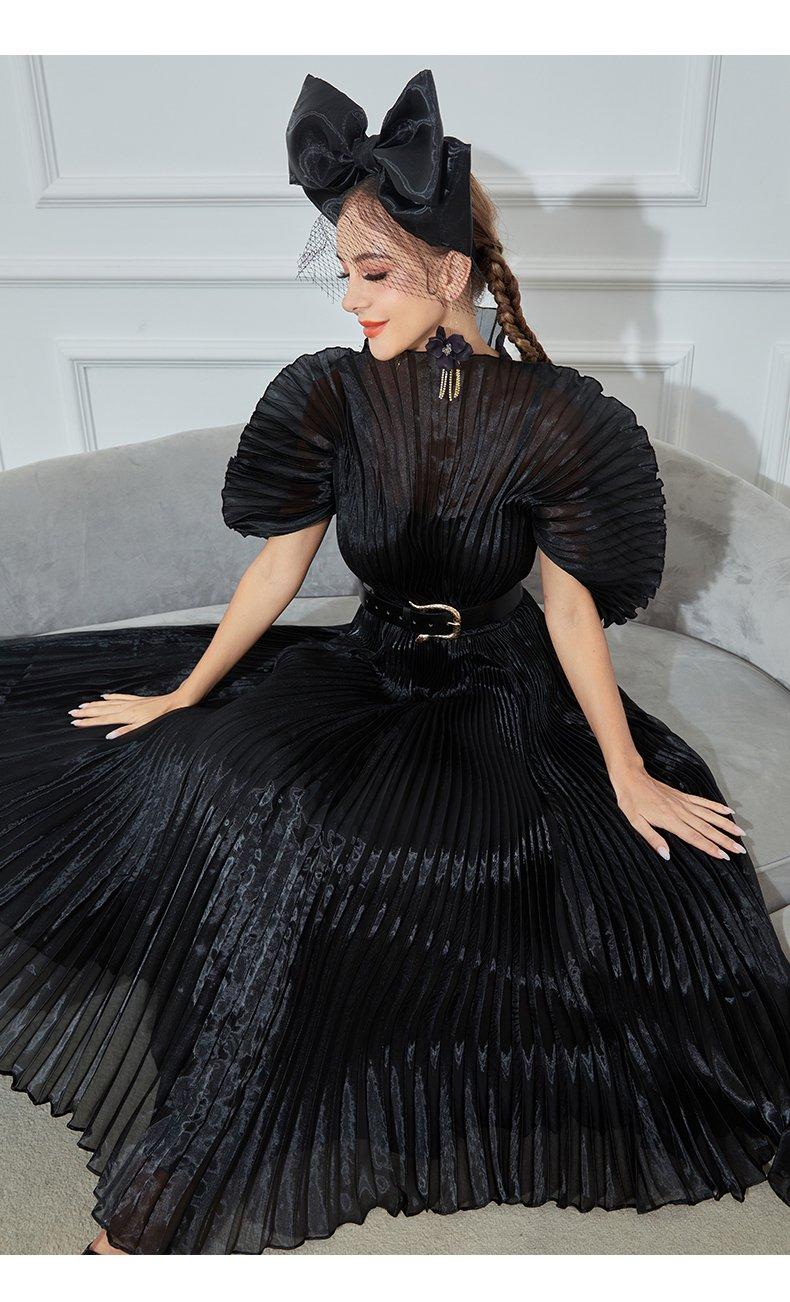 Long pleaded big puffy sleeve elegant inspired couture black dress
