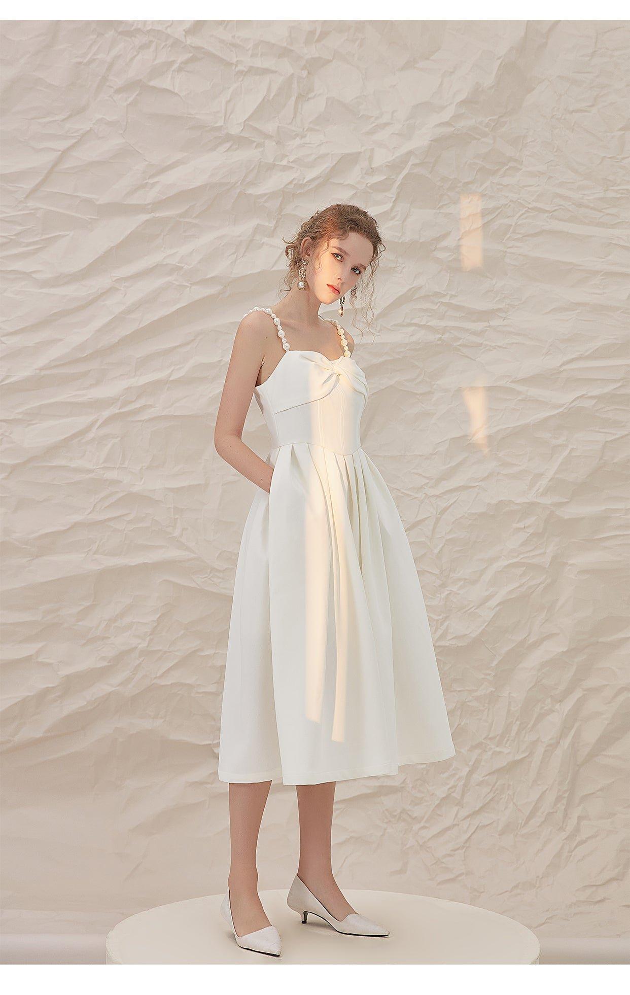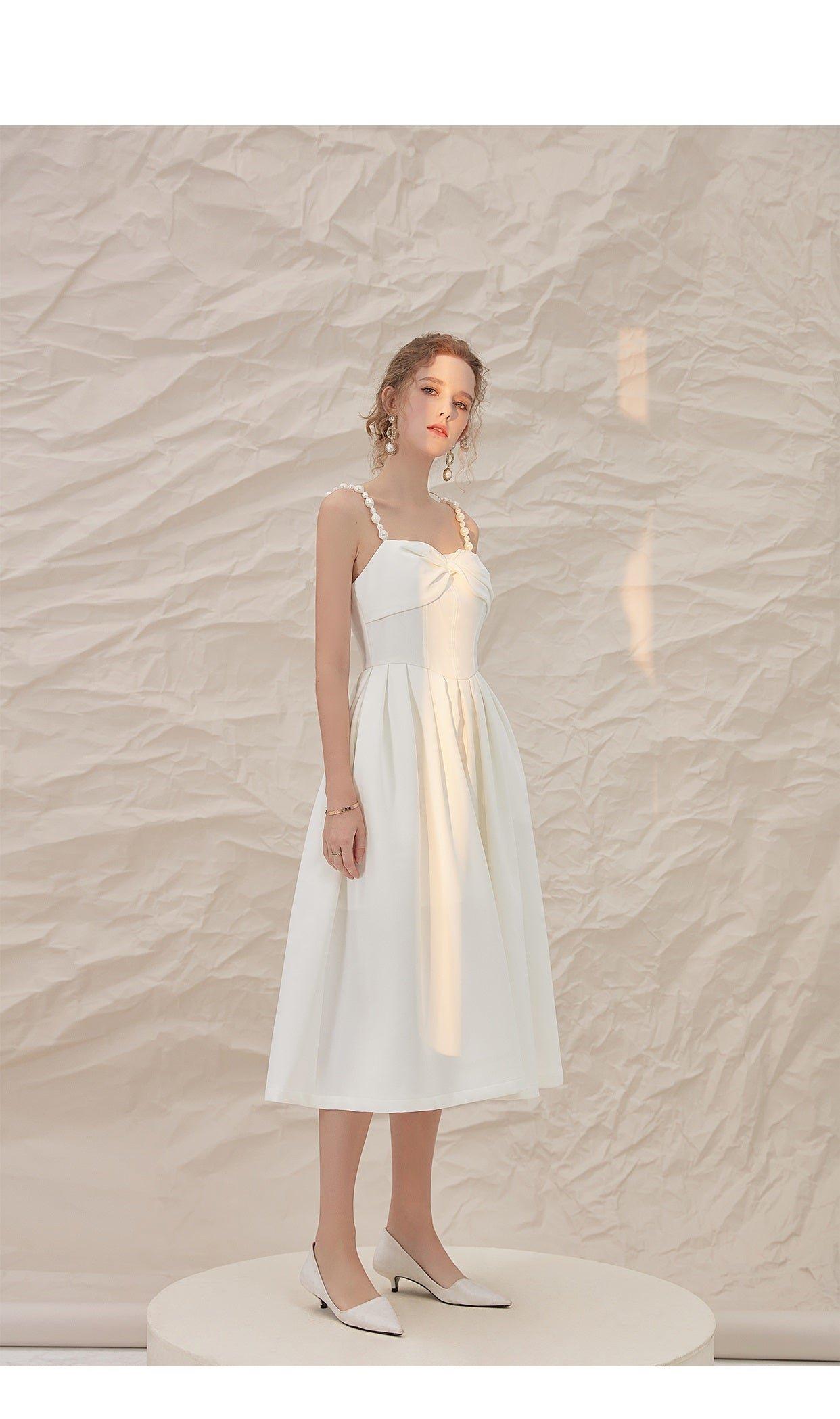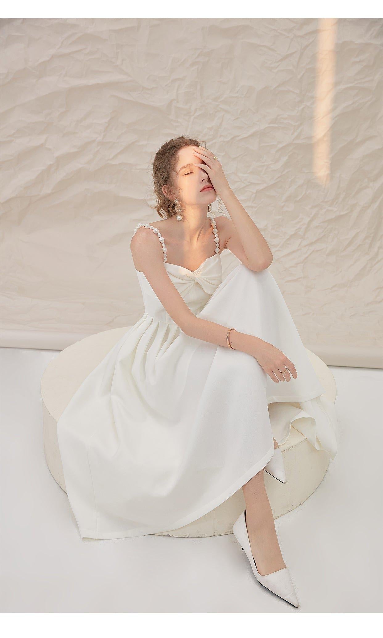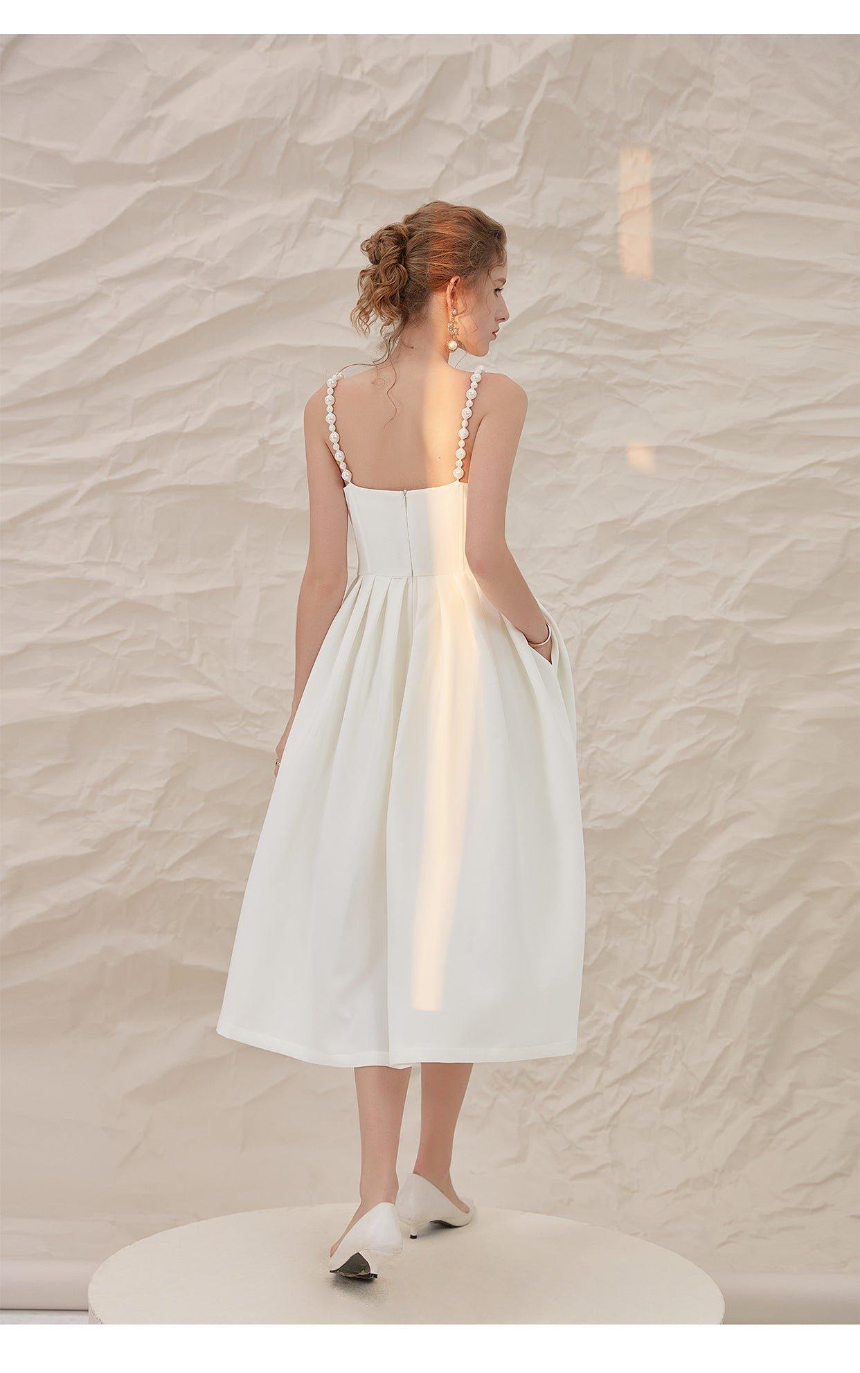 Complete your look with delicate accessories and a pair of elegant heels to truly embrace the essence of French elegance. With its timeless appeal, the Luxury French Retro Elegant White Midi Wedding Texture Backless Dress by Stila is a stunning choice that will make your wedding day unforgettable.