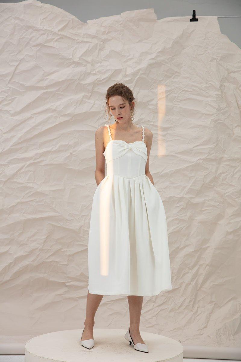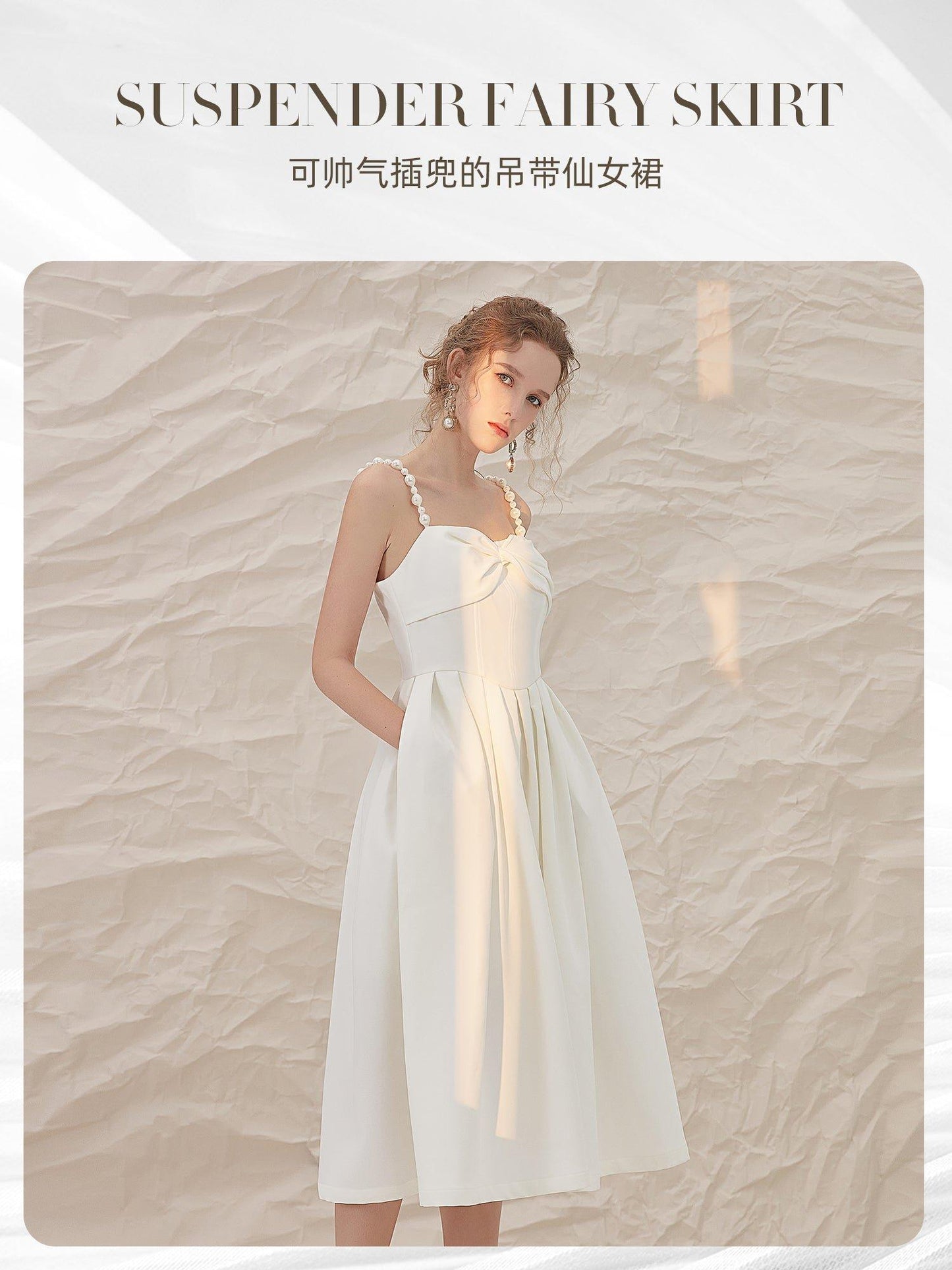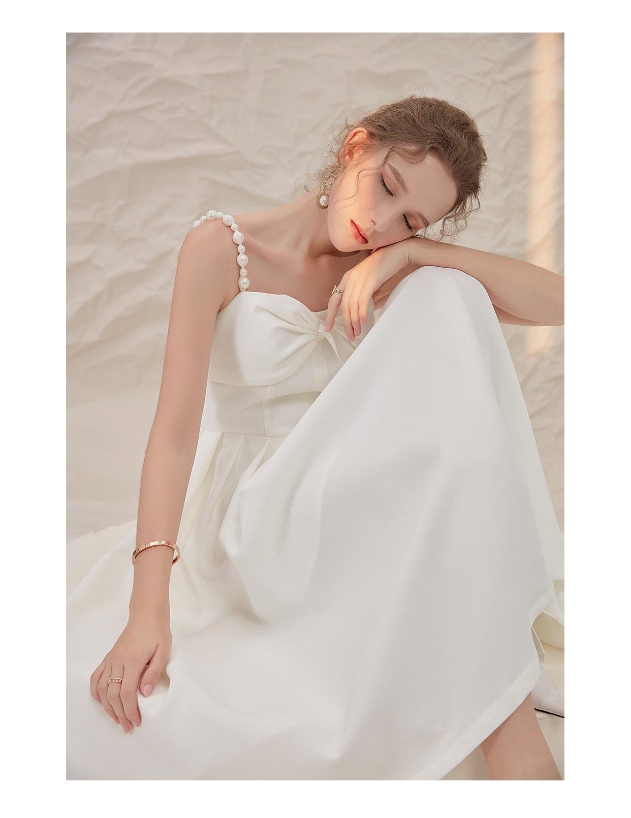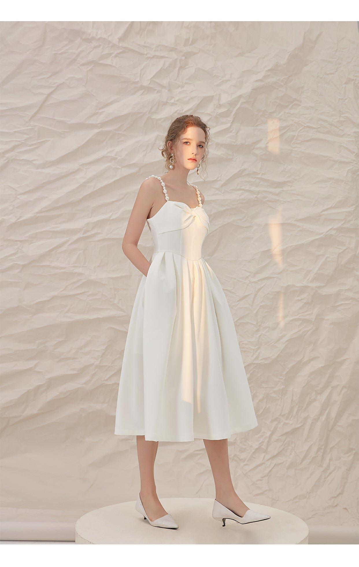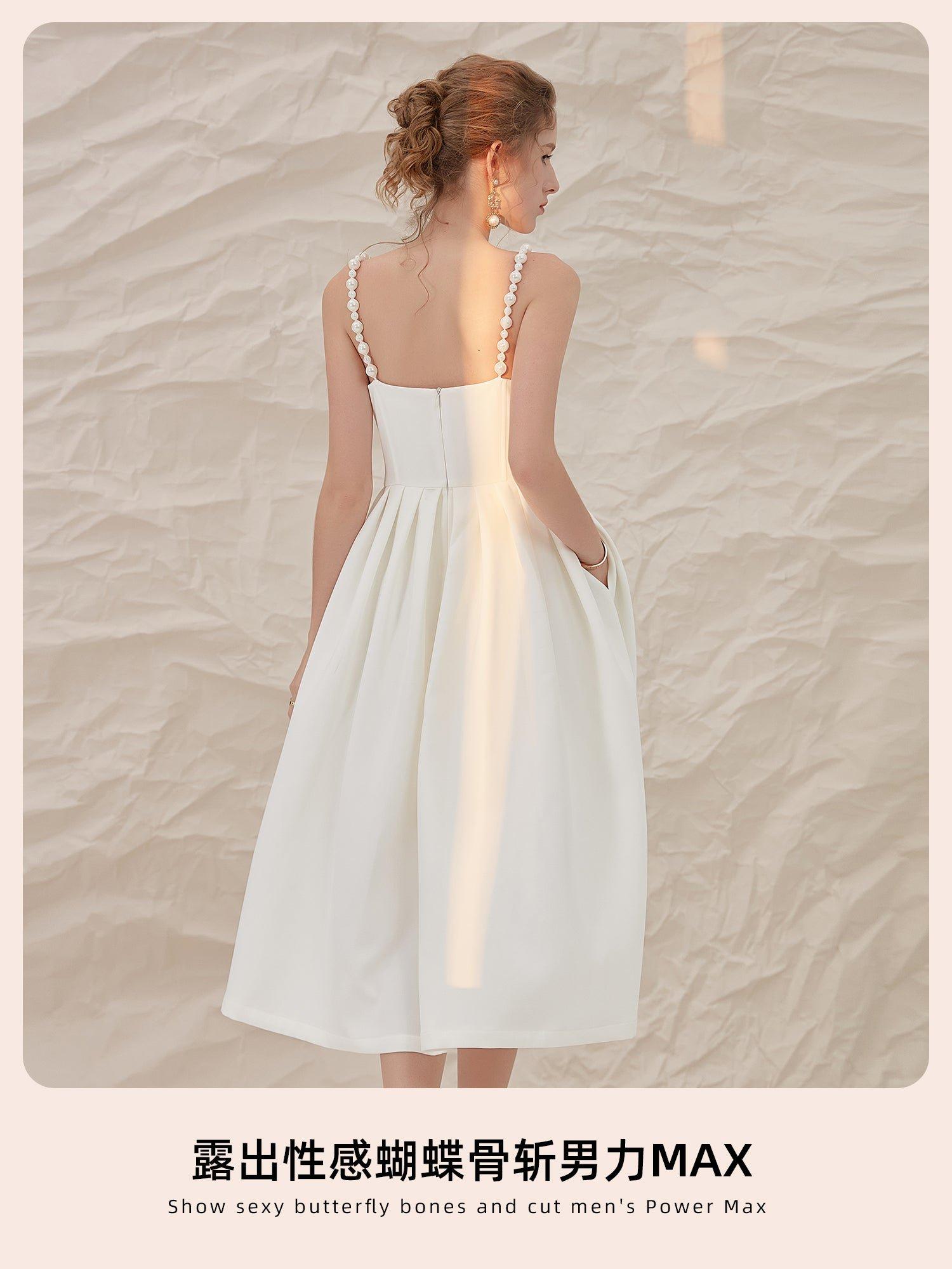 Complete your look with delicate accessories and a pair of elegant heels to truly embrace the essence of French elegance. With its timeless appeal, the Luxury French Retro Elegant White Midi Wedding Texture Backless Dress by Stila is a stunning choice that will make your wedding day unforgettable.