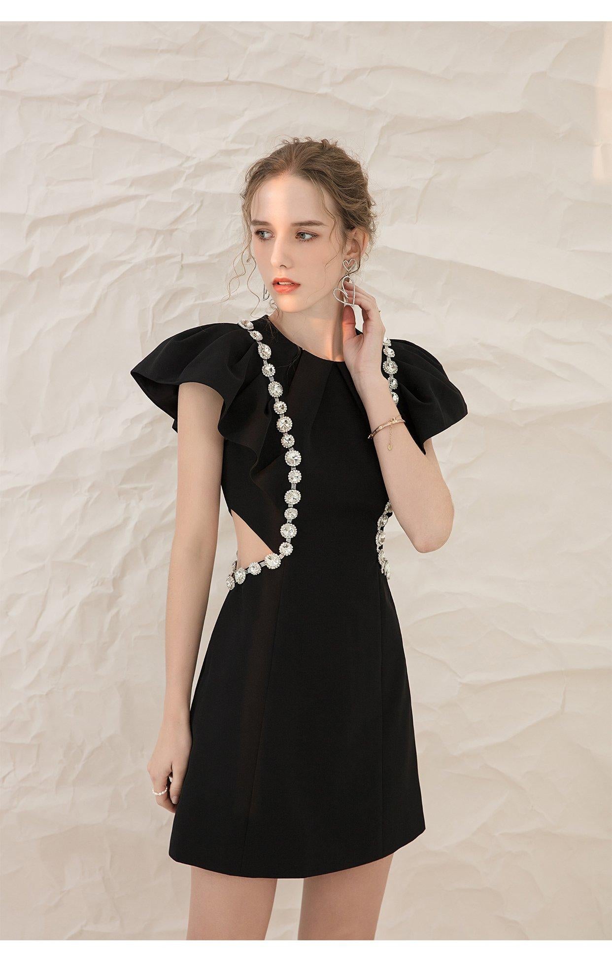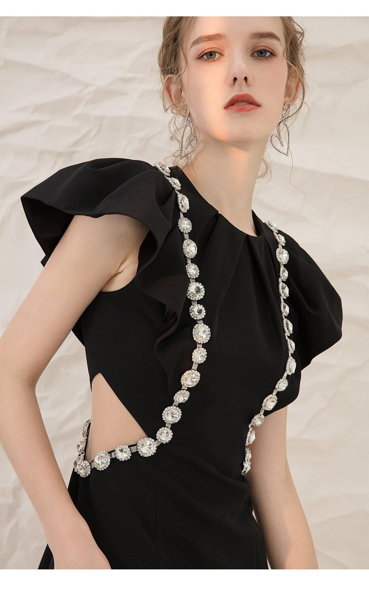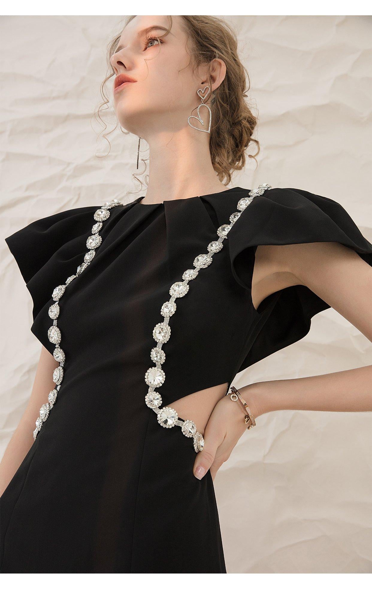 Crafted with meticulous attention to detail, this mini dress is a true showstopper. The open sides of the waist add a touch of sensuality, making it perfect for romantic dates and special occasions.