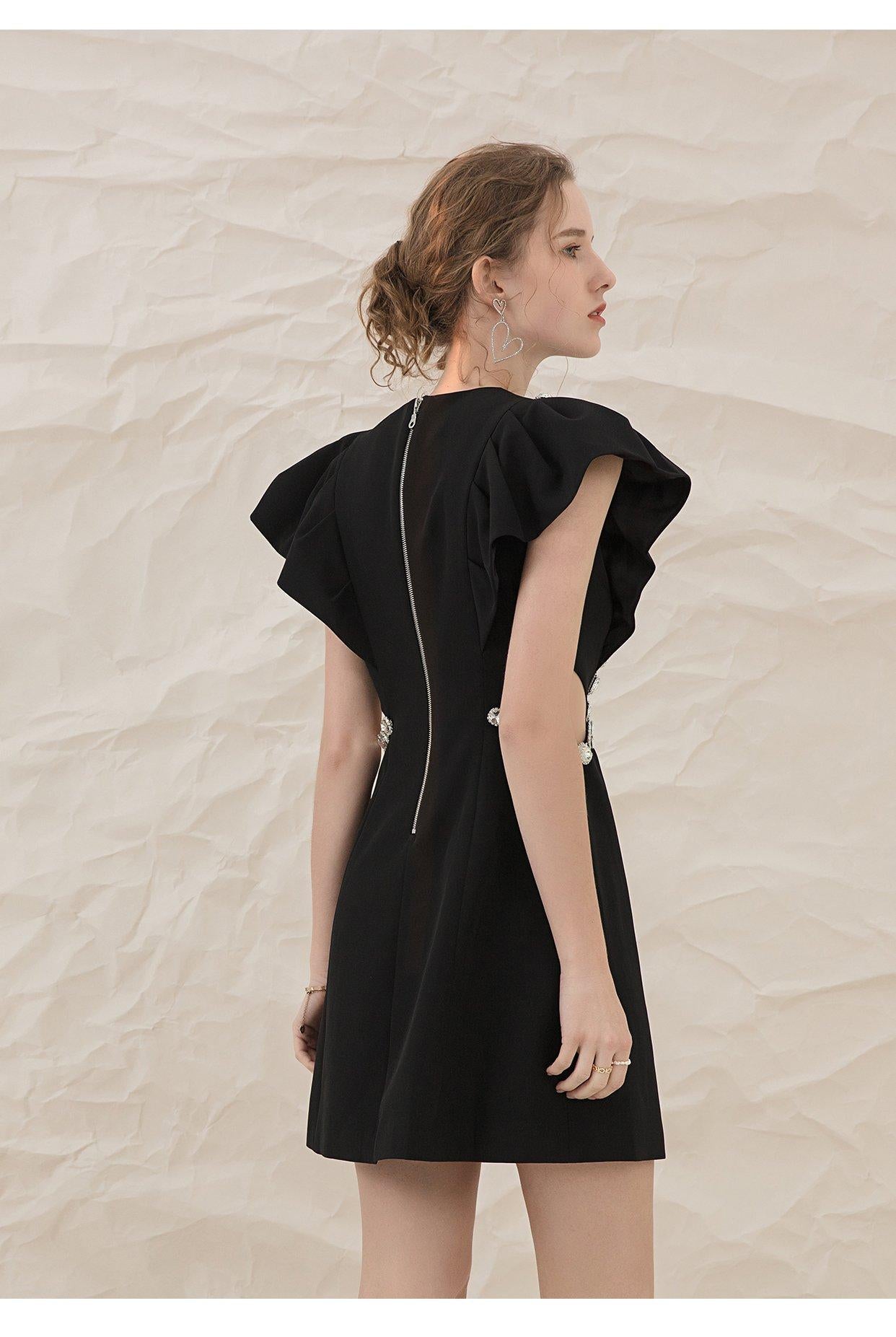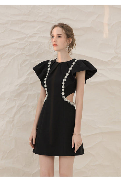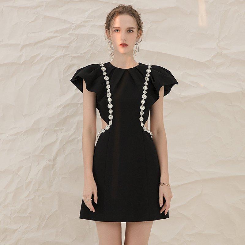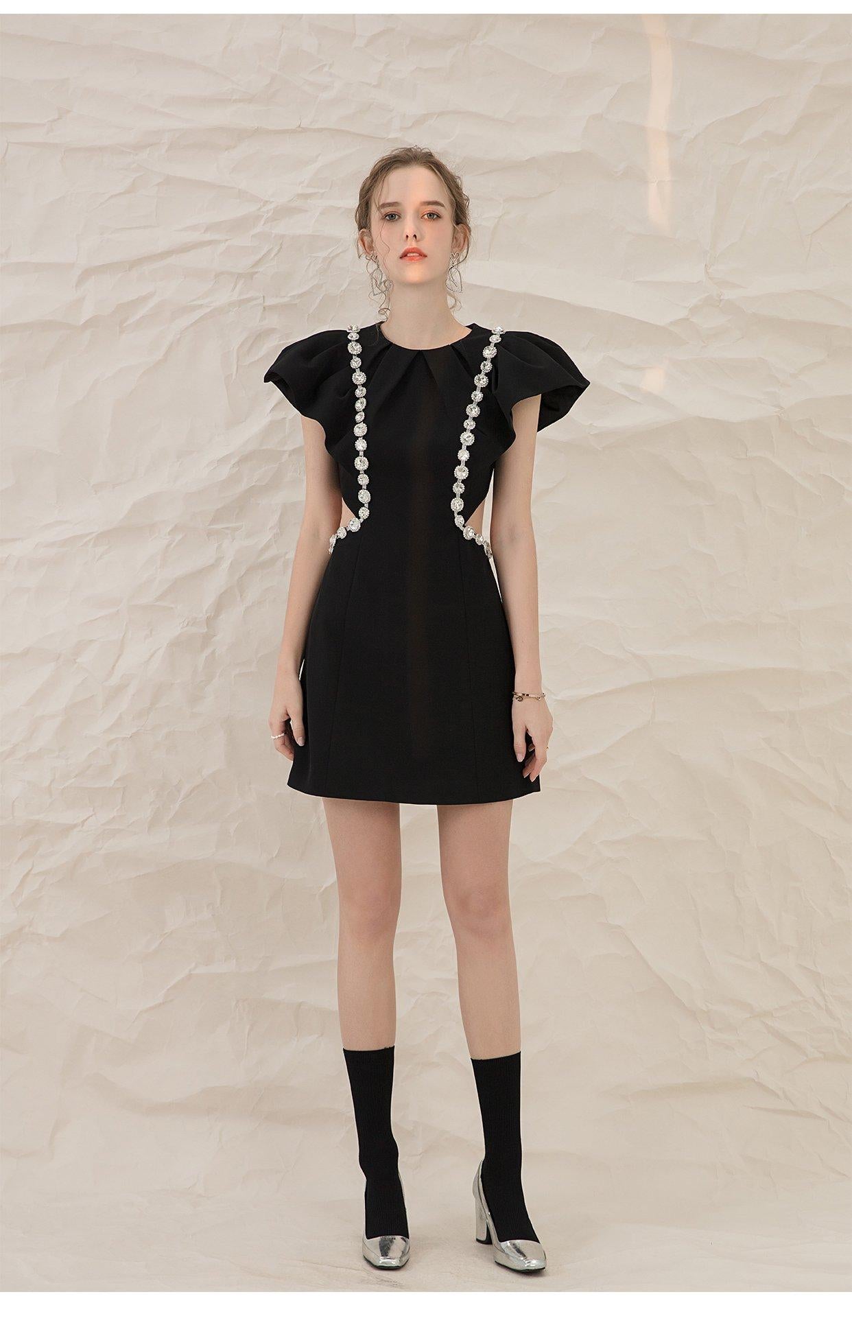 Crafted with meticulous attention to detail, this mini dress is a true showstopper. The open sides of the waist add a touch of sensuality, making it perfect for romantic dates and special occasions.