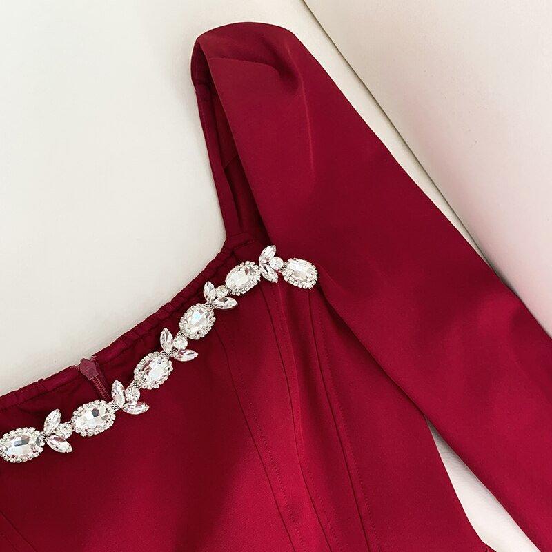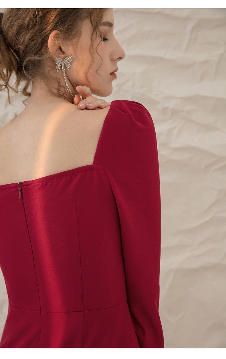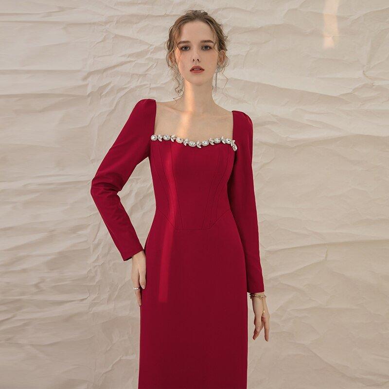 Introducing the epitome of elegance and sophistication - the Luxury Red Elegant Square Collar long Sleeve midi pencil dress by Juika.