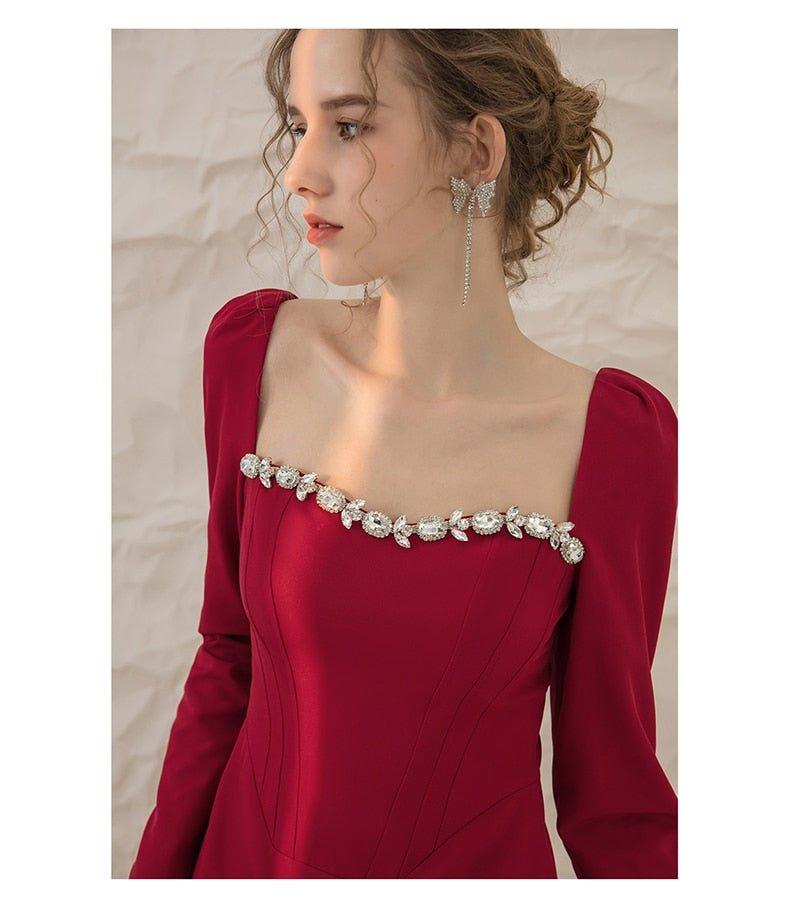 With its timeless design and exquisite craftsmanship, this dress is a true showstopper. The square collar adds a touch of modernity, while the long sleeves provide a graceful and refined look.