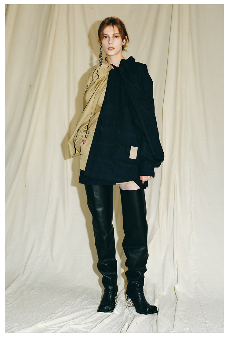 MAYALI autumn winter contrast panels luxury asymmetrical cotton shirt - Sayyi
