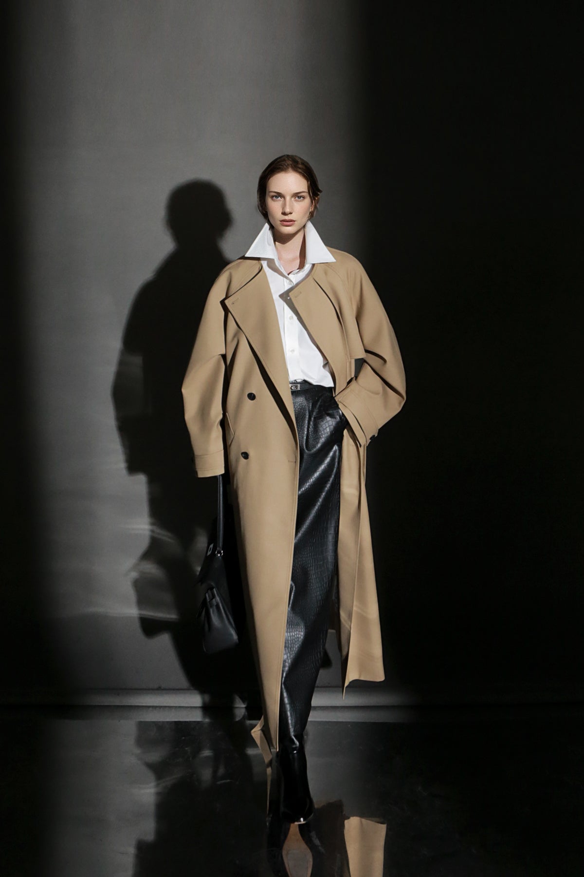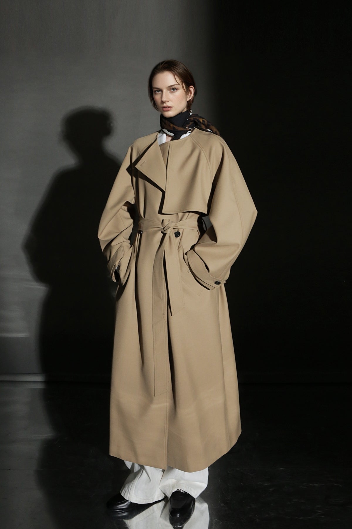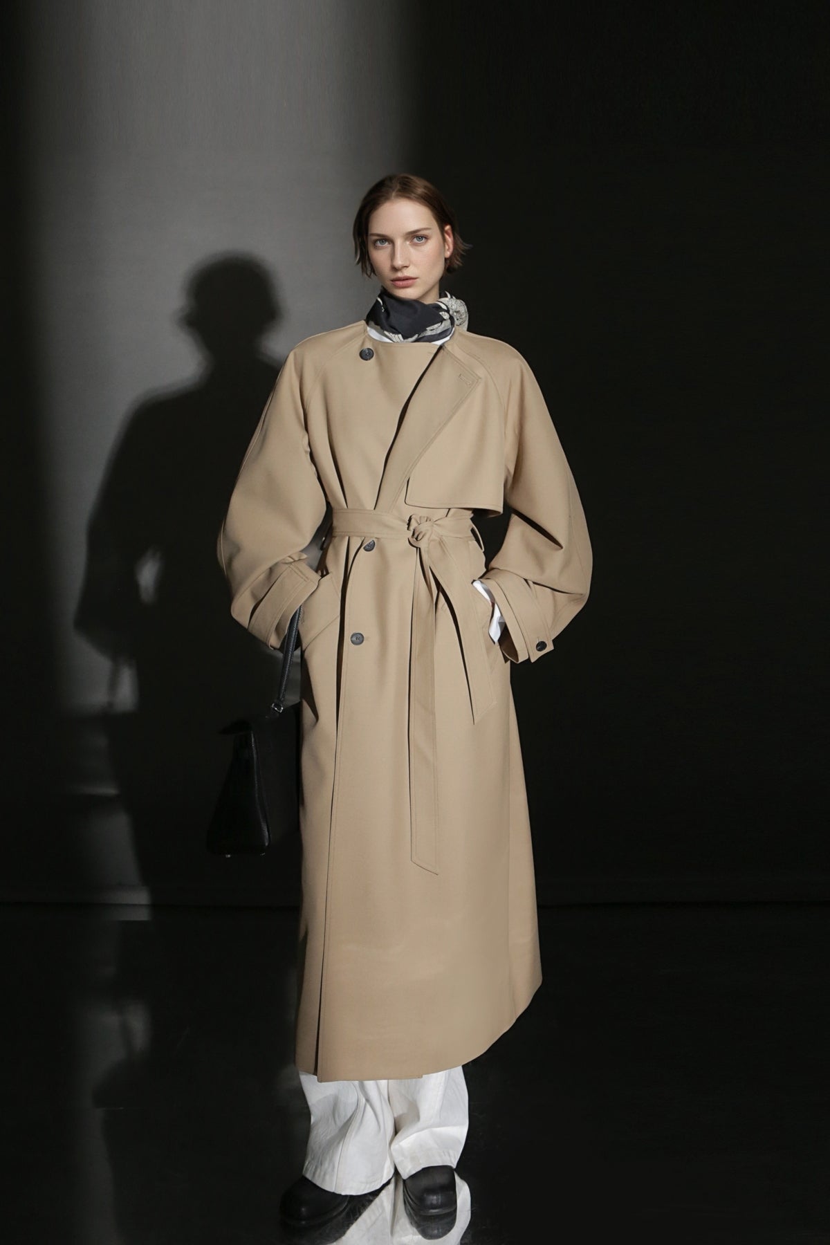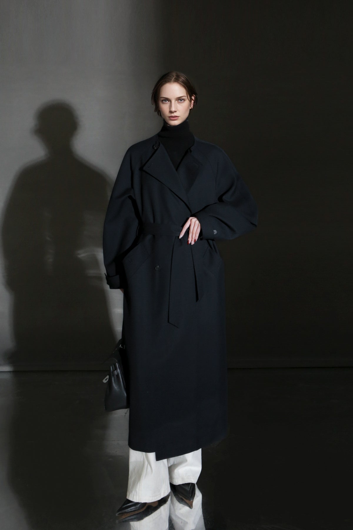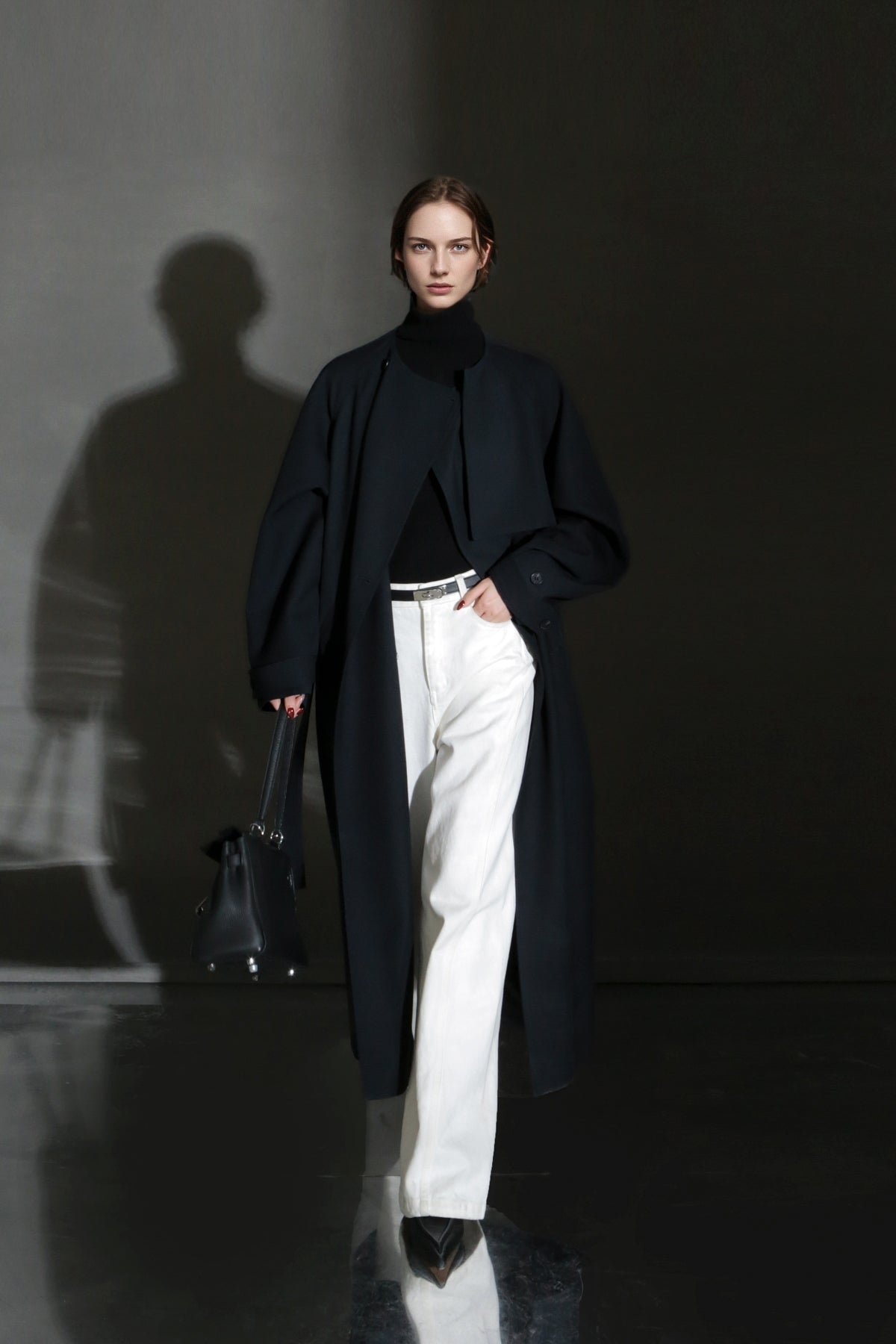 PIAOIN high-end wool relaxed round neck design old money windbreaker jacket -GINA