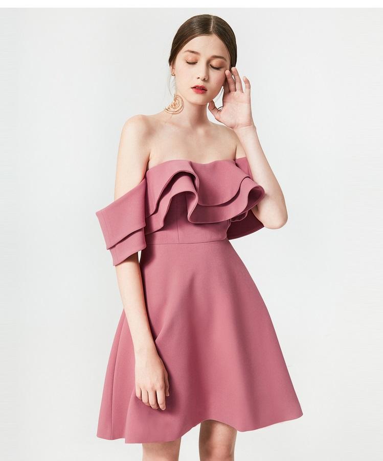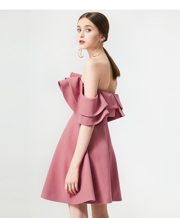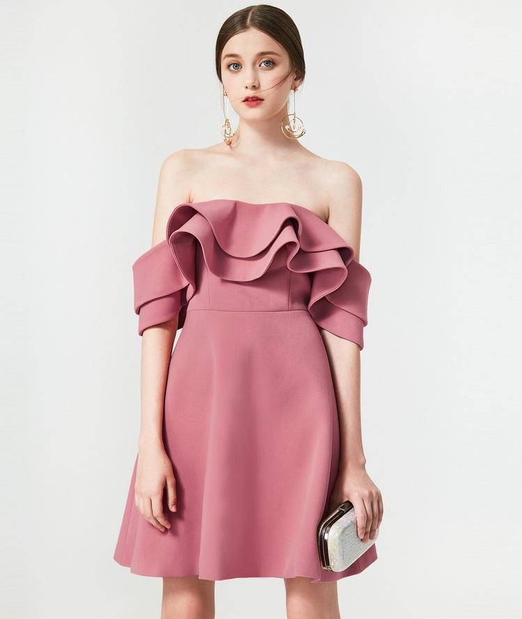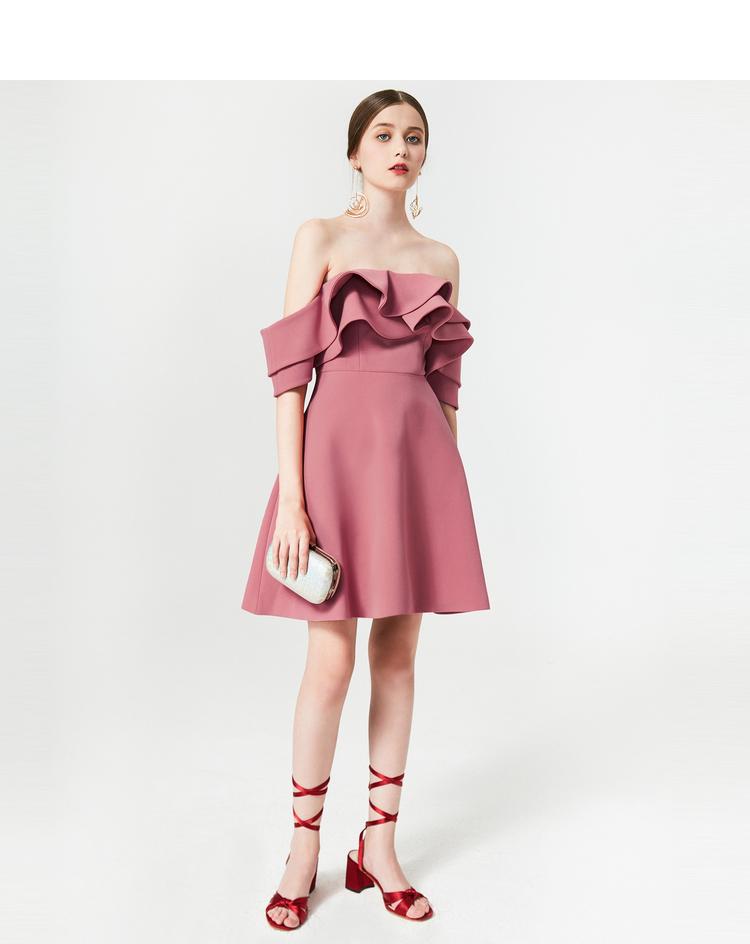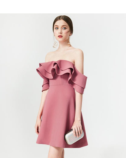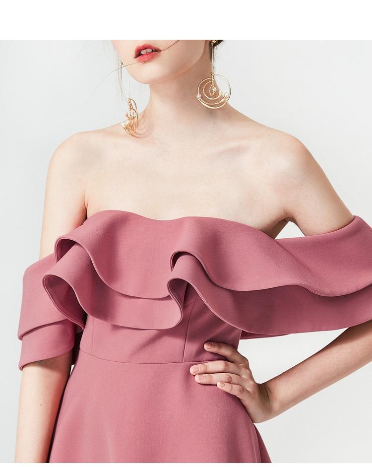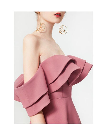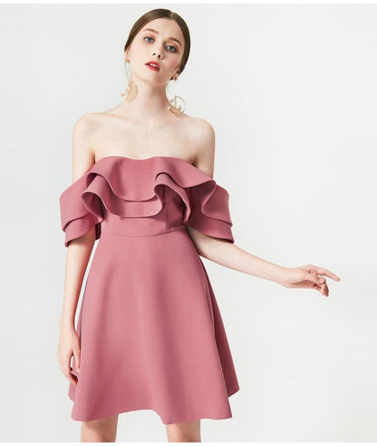 Sugar ruffled side dress off shoulder tube top bare shoulder dress - Nagiar