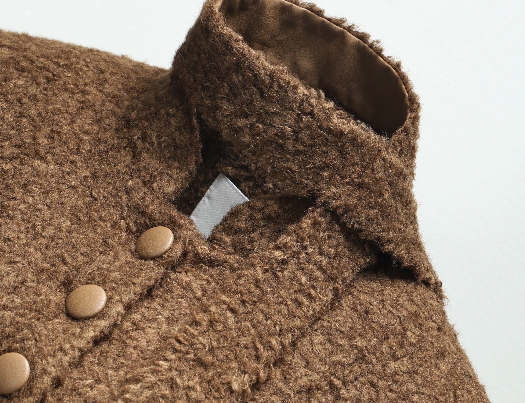 This WANGXO short coat combines luxurious mercerized curly-textured wool with expert tailoring to deliver warmth and style. Its stand collar and shoulder-bearing silhouette create a refined, structured look, while the warm streamer design adds a sophisticated touch. Perfect for cooler seasons, this coat offers both comfort and an elegant presence for the discerning wearer