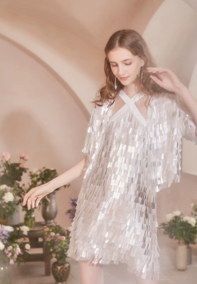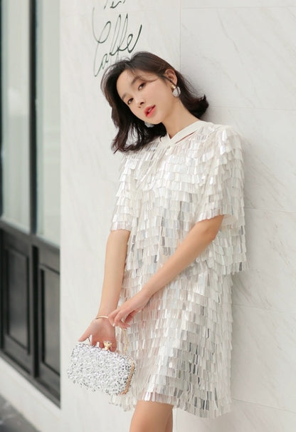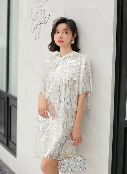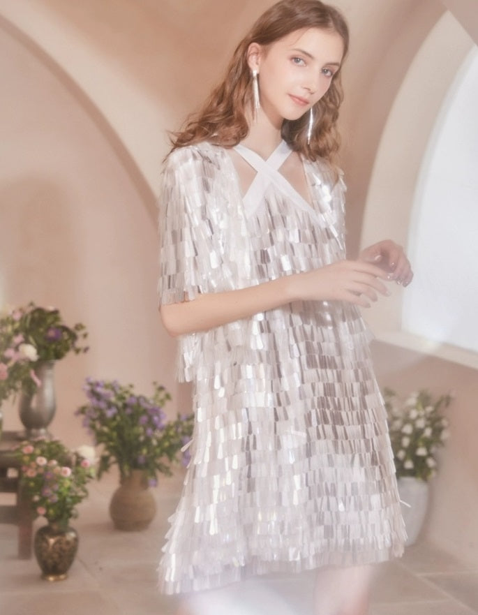 Wardrobes by Chen Elegant Sliver tassl flapper Sleeveless Sequin short Party Dress-LIA