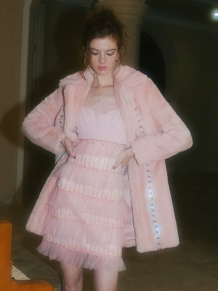 Wardrobes by Chen Light Luxury Embroidered Bead High Waist Short Dress-Safeera