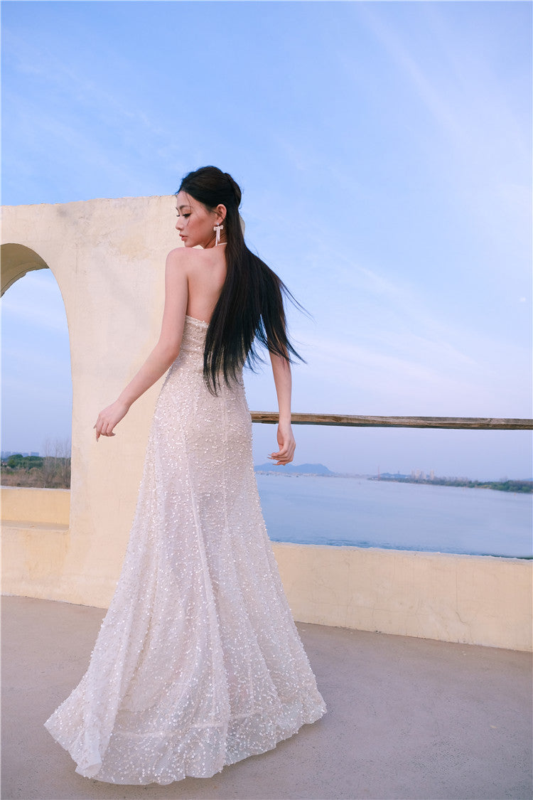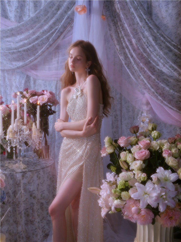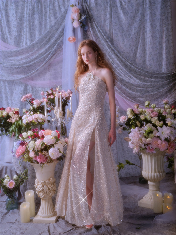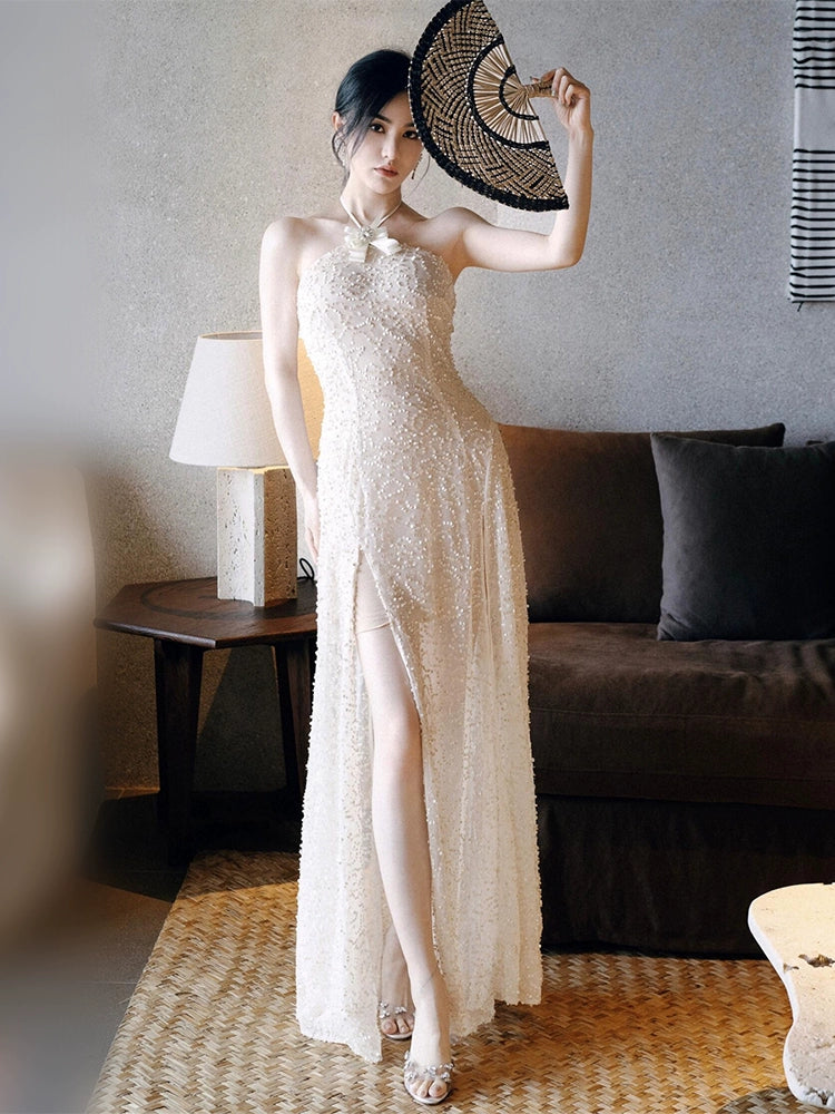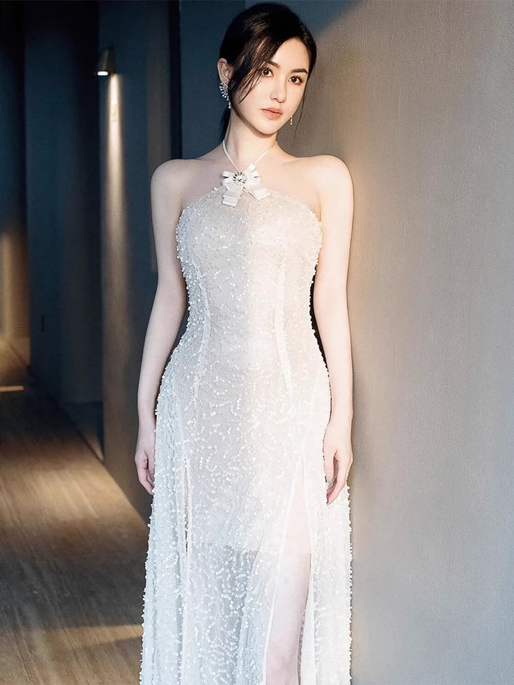 Indulge in elegance with our Wardrobes by Chen Luxury French Embroidered Butterfly Halter neck Dress- Kara. This exquisite dress exudes glamour with its delicate French embroidery and halter neck design. Feel luxurious and exclusive in this must-have piece.